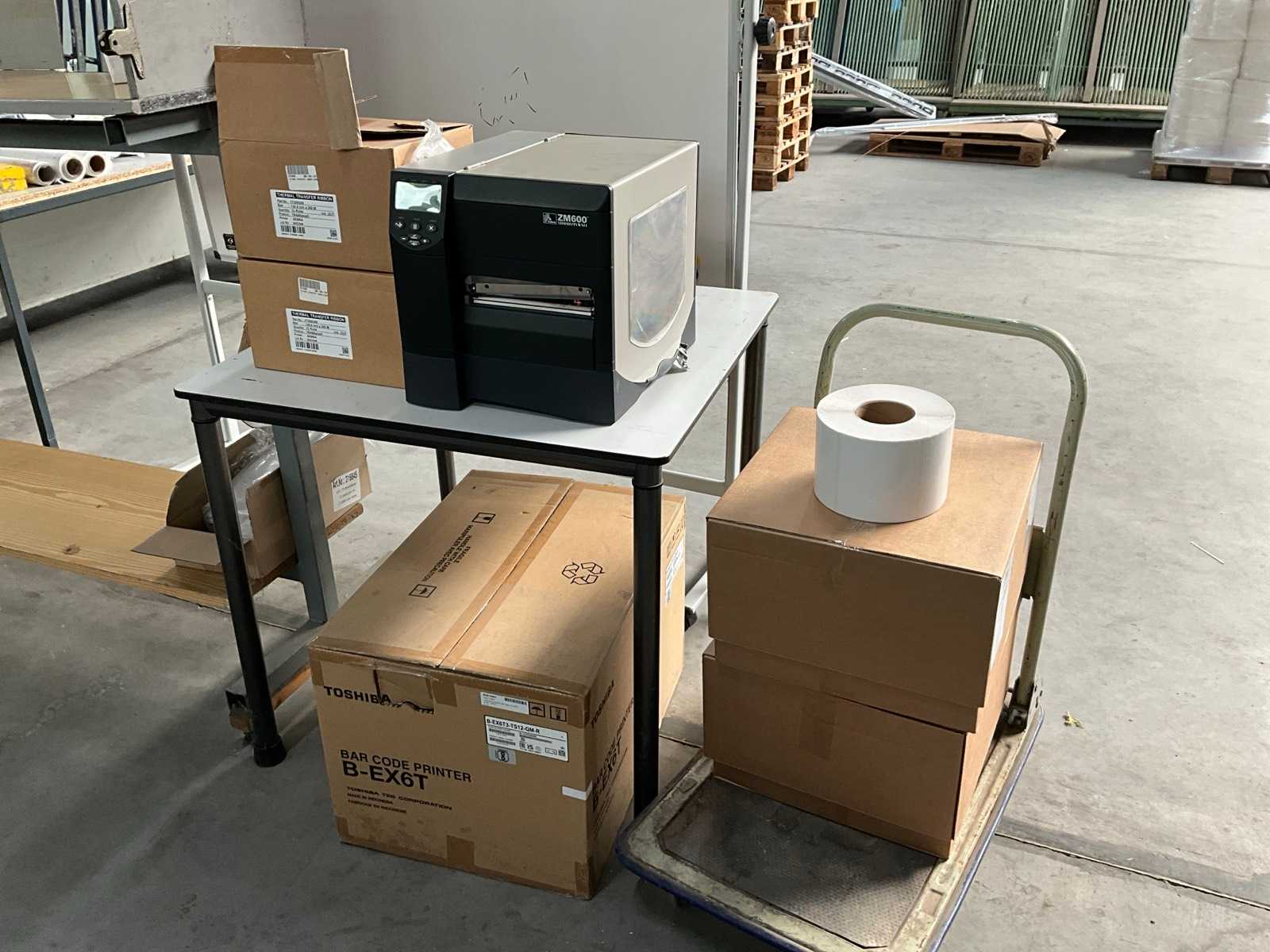 ZEBRA ZE500-4 on Stand Comes with freestanding conveyor bracket. Auction-ID: A1-44626-50