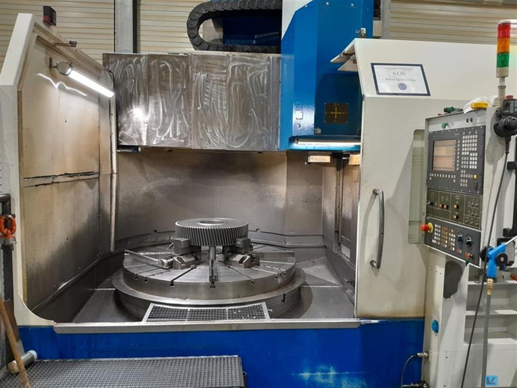 faceplate diameter:1400 mm swing diameter:2000 mm turning height:1500 mm main drive:80 kW faceplate speeds from - to:1 - 365 U/min milling motor:37 kW ram head dimension:240 x 240 mm max. ram stroke:1250 mm total power requirement:133 kVA weight of the machine ca.:50 t dimensions of the machine ca.:11 x 5 x 6,4 m Machine was overhauled in 2008 by OEM New control CNC SIEMENS 840 D automatic tool changer 72-pcs C-axis with driven tools Angle-, straight tool holders with CAPTO holder Coolant device Chipconveyour