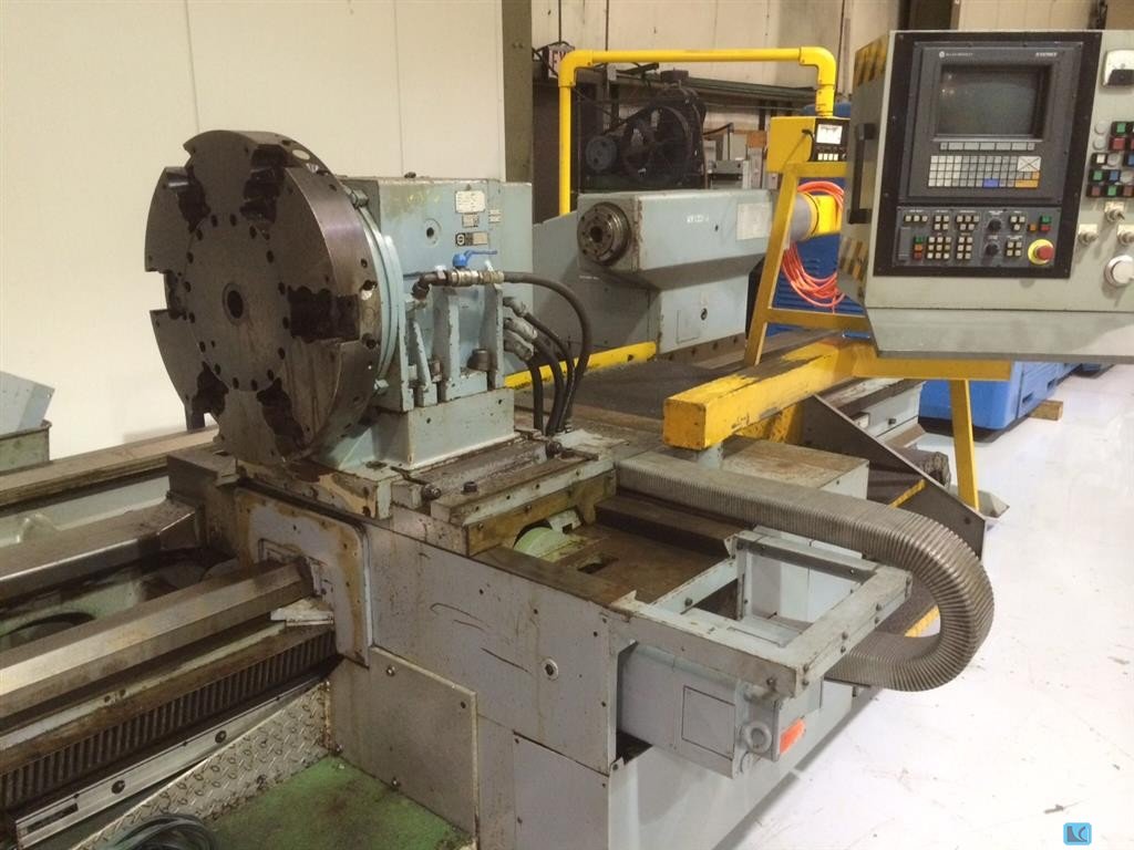 turning diameter:1600 mm turning length:12000 mm control:FAGOR 8050 Used CNC Lathe with FAGOR 8050 and extensive accessories. For further technical data and accessories, pls browse the Appendix. Parallellathe WMW mod. 4 GUIDE-WAYS ¦ CNC: FAGOR 8050 ¦ bed: monolithic ¦ centres height: 800 mm ¦ centres distance: 12000 mm ¦ swing over cross-slide: 1250 mm ¦ turret: automatic 4 positions ¦ tailstock: motorized ¦ tailstock connection: hydraulic ¦ platform: diam. 1000 mm ¦ steady rests: nr.02 ¦ chip conveyor Warranty: none Take advantage of the favorable leasing and hire-purchase terms from IKB Leasing. Ask us about it.