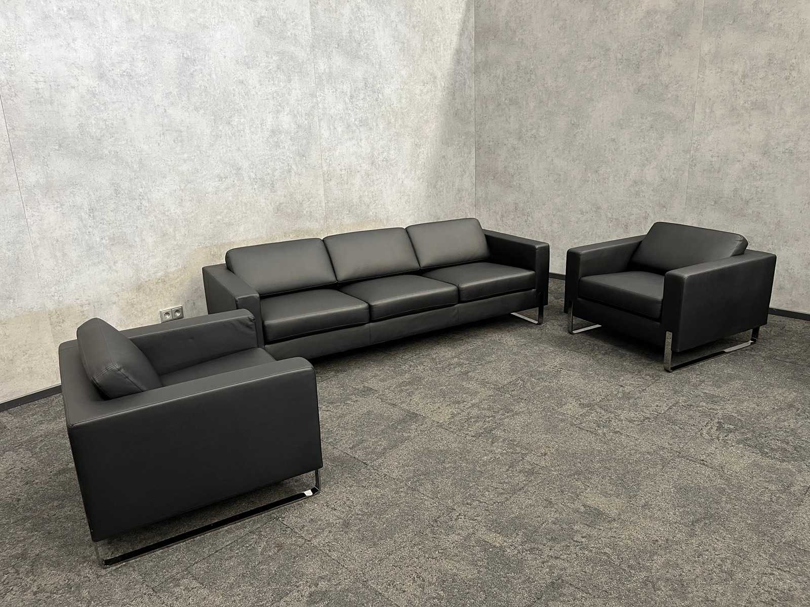 Dim. Sofa approx. hxbxd 75x205x105 cm. seat height approx. 38 cm. -- Dim. Armchair approx. HxWxD 63x78x78 cm. seat height approx. 35 cm. Auction-ID: A1-44654-312