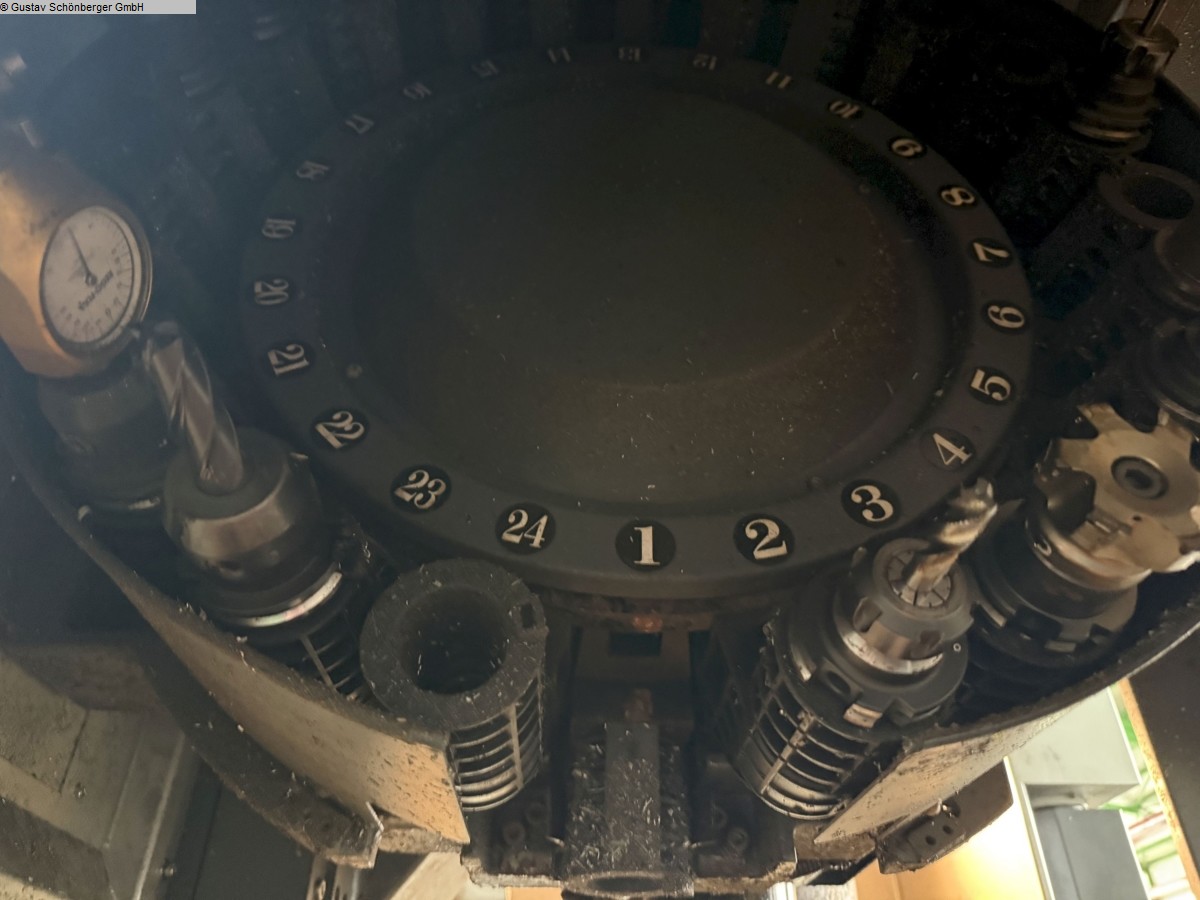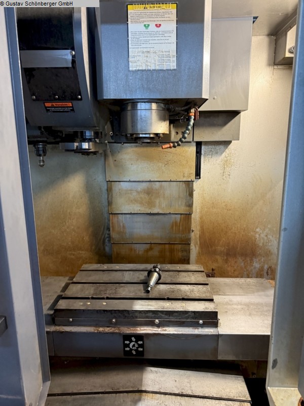 Table clamping surface: 765 x 400 mm Travel x/y/z: 650/410/510 mm Spindle holder: BT 40 small/large distance table/spindle: approx. 90/690 mm Spindle speeds: 80 - 8000 rpm Number of tool positions: 20 pieces Feeds: approx. 30 m/min Rapid traverse: approx. 30 m/min electr. Connection: 380 V, approx. 15 kVA kW Space requirement: 2300 x 2100 x 2650 mm Weight: 4000 kg