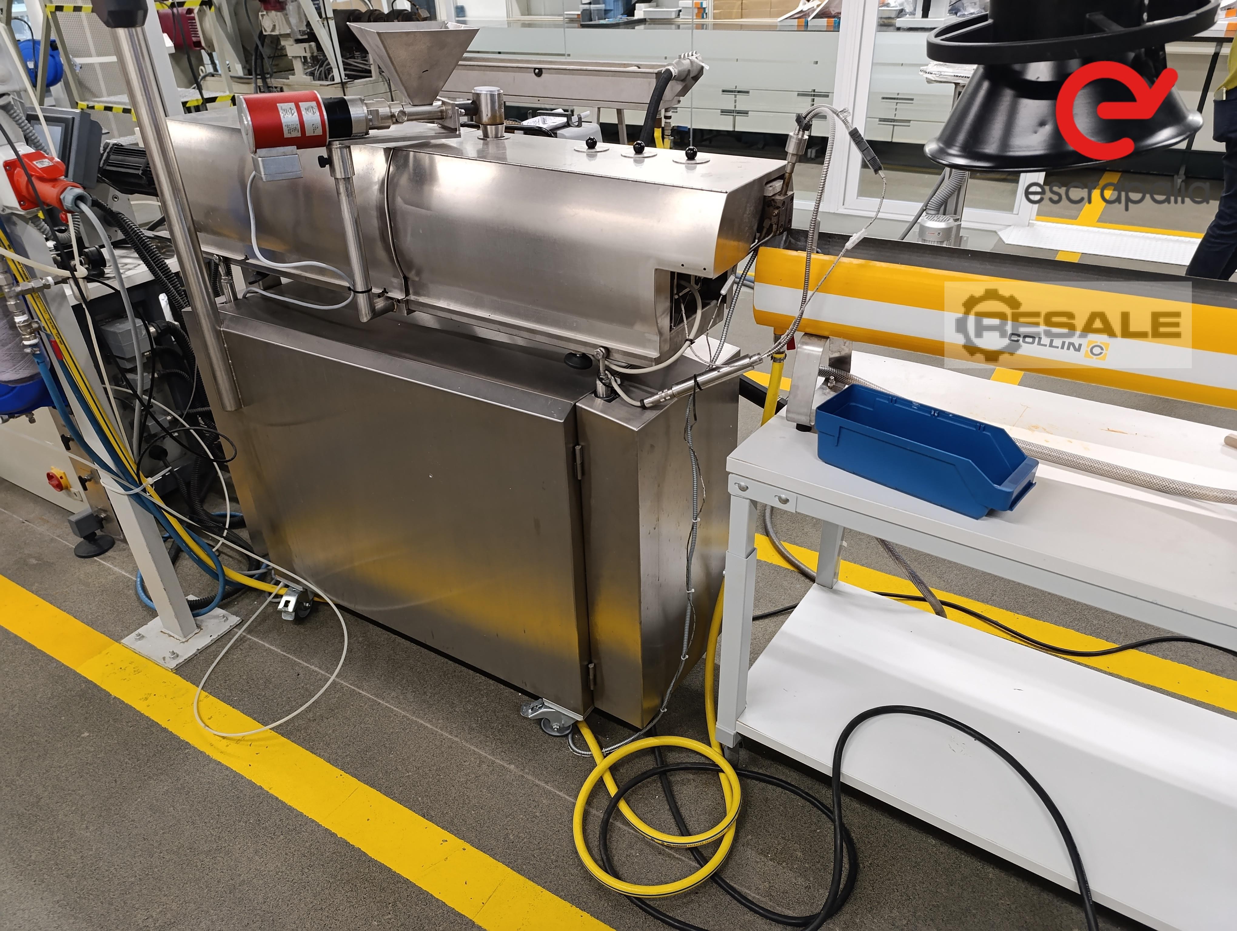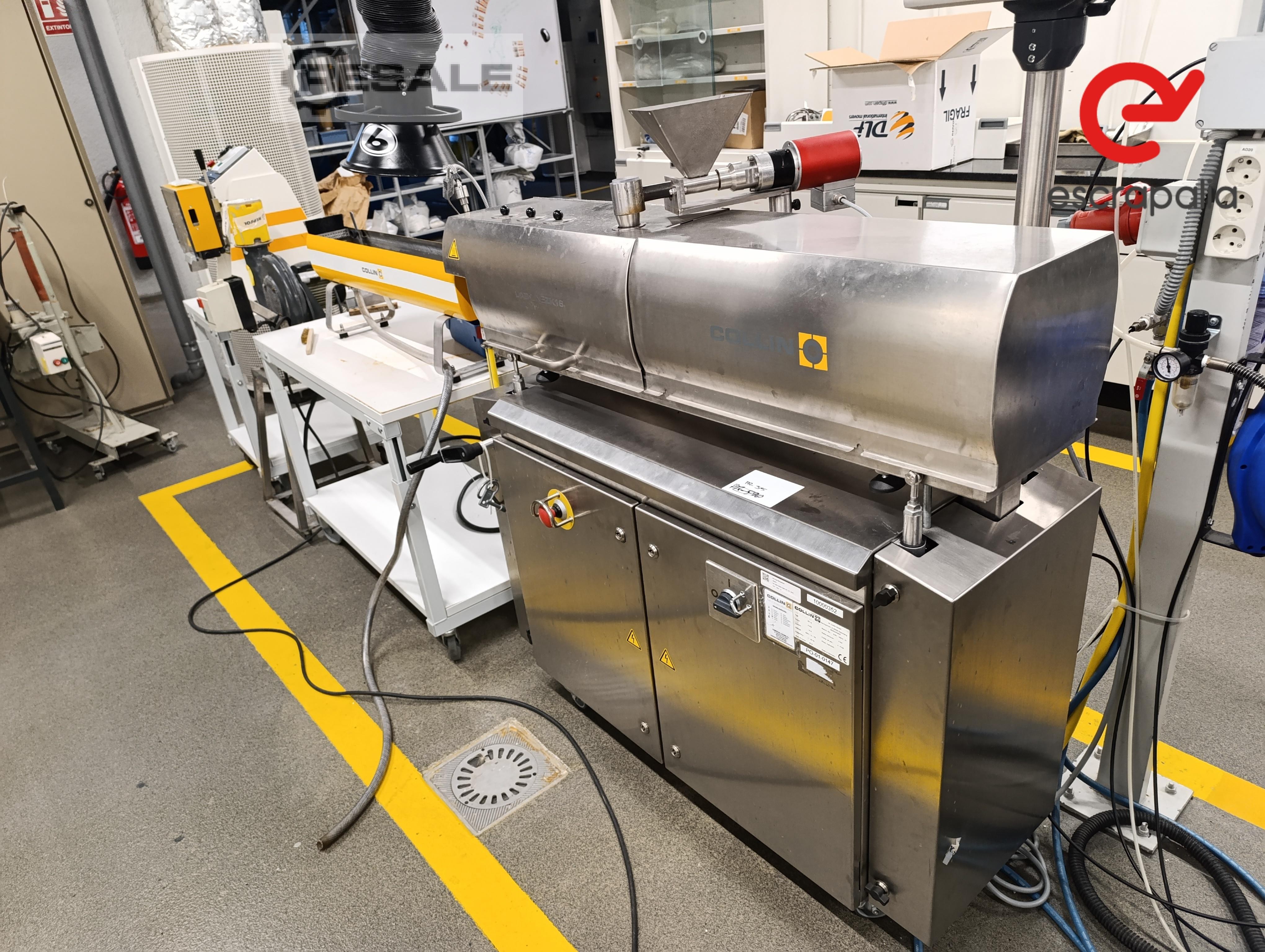 2018 Dr. Collin ZK 16 Twin-Screw Lab/Pilot Polymer Extrusion Line Overview Excellent opportunity to acquire a complete, high-quality laboratory/pilot extrusion line manufactured by Dr. Collin GmbH, an industry leader in R&D and polymer processing equipment. Built in 2018, this co-rotating twin-screw extrusion line (ZK 16 model) is specifically designed for processing plastic materials in small batches, making it ideal for research and development, testing, compounding, and new formulation development. Key Technical Specifications Manufacturer: Dr. Collin GmbH – Lab & Pilot Solutions Model: ZK 16 (Twin-Screw Extruder) Year of Manufacture: 2018 Condition: Used (Dismantled and ready for transport) Screw Diameter: ~16 mm (Co-rotating twin-screw) Power: 8 kW Voltage/Current: 400 V + N + PE / 15 A / 3~ 50 Hz Operating Pressures: Water: 4 bar / Compressed Air: 4 ...