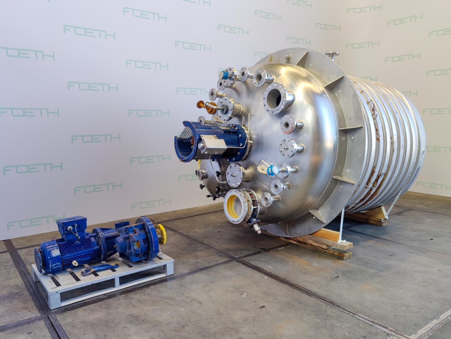 General SKU213T157 MakeAlbi Alois Binderberger LocationBarneveld Pressure Working pressure1.5 Bar Vacuum possiblecheck Working pressure jacket6 Bar Main Features MaterialStainless steel Volume8000 Ltr. Motor7.5 KW Specified Features - Stainless Steel Reactor MaterialStainless steel 1.4571 (316Ti) Stainless Steel Reactors Reactorcheck Capacity8.000 Ltr. (max. 10.000 Ltr.) Vessel sizesdia. 2200x3562 mm Conical bottomcheck Dished top sidecheck Manholecheck Top connectionsDN40 (4x), DN65, DN100 OutletDN65 With jacketcheck Half coil jacketedcheck Max. temperature-25/150 °C With paddle stirrercheck (Stelzer: Vortex) Motor7.5 kW (Ex) Speed mixing shaft5,6-56 Rpm Information No.625 Year of construction1983 Mounted on legscheck Floorspace2,6x2,6 m Total height4,8 m ATEX compatiblecheck Extra SpecificationsINCLUDING NEW MECHANICAL SEAL Plastic & polymersCataly ...