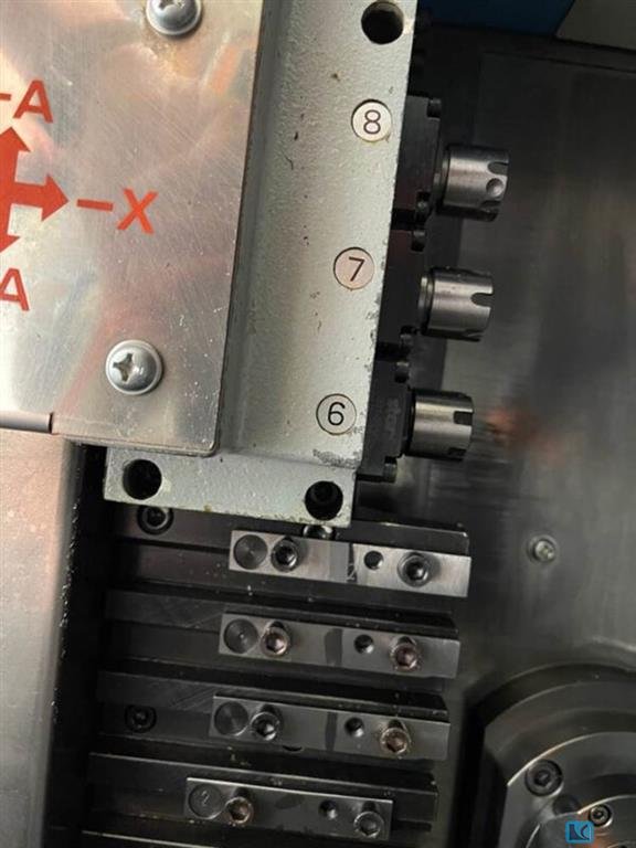turning diameter over bed:20 mm spindle passage:3-20 mm turning length:250 mm control:FANUC 31 i-A main-spindle speed:10.000 1/min subspindle speed:10.000 1/min Main spindle capacity:3,7 kW subspindle power:2,2 kW number of tools:35 weight of the machine ca.:3,3 t dimensions of the machine ca.:2,11 x 1,2 x 1,89 m CNC sliding headstock turning/milling centre with B-axis Control system: Fanuc 31i-A Machining length: max. 250 mm Number of controlled axes: 7 axes and max. 5 axes simultaneously B-axis: 0°-130° freely programmable Rod passage: Ø 3 mm to max. Ø 20 mm Drive power main spindle: 3.7 kW Drive power counter spindle: 2.2 kW Main spindle speed: 10,000 rpm Counter spindle speed: 10,000 rpm C-axis: Main and counter spindle Number of linear supports: 2 pieces Total number of tools: 35 pieces Dimensions (LxWxH) in mm: 2,110×1,200×1,885 Weight: 3,300 kg Conversion from long to short ...