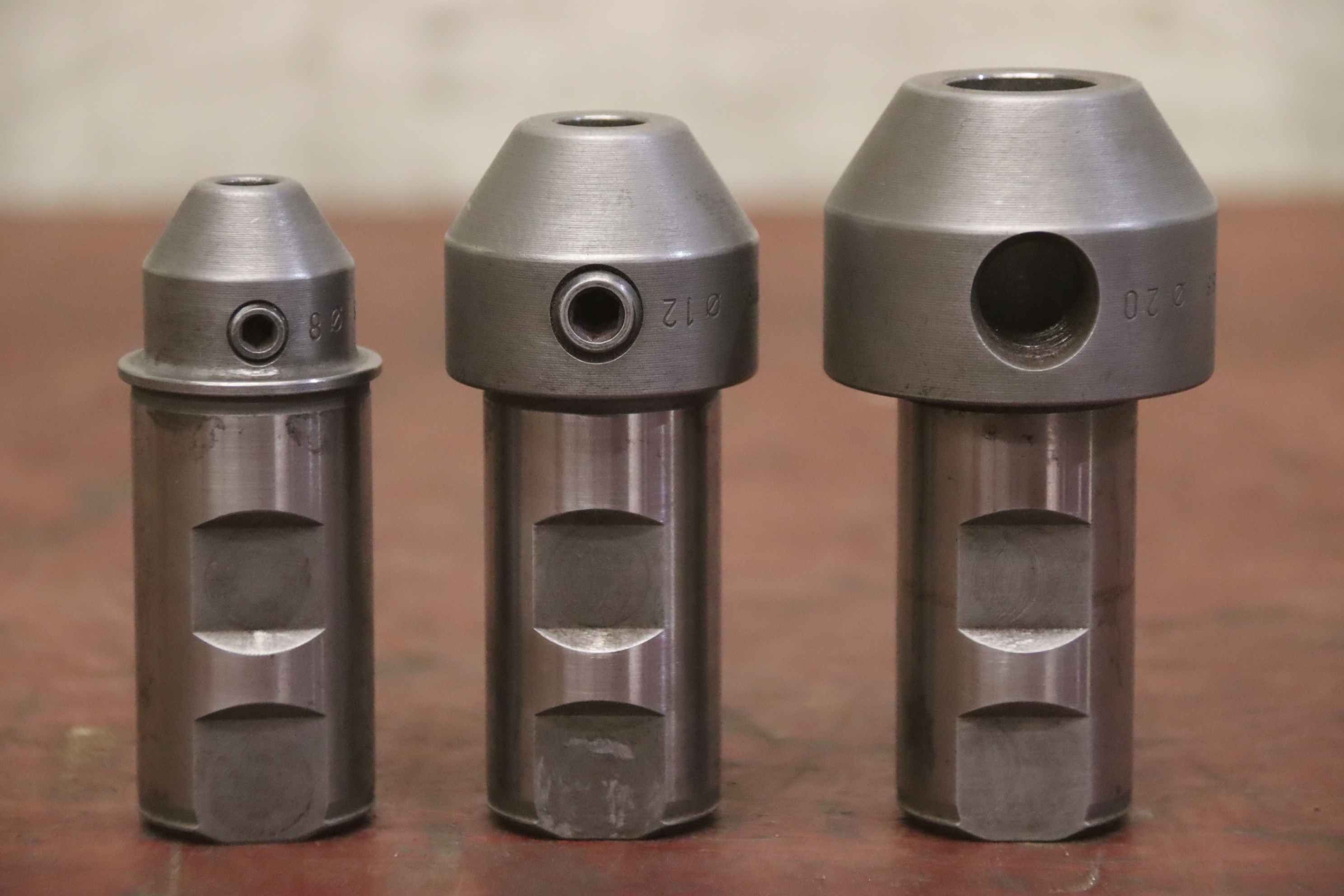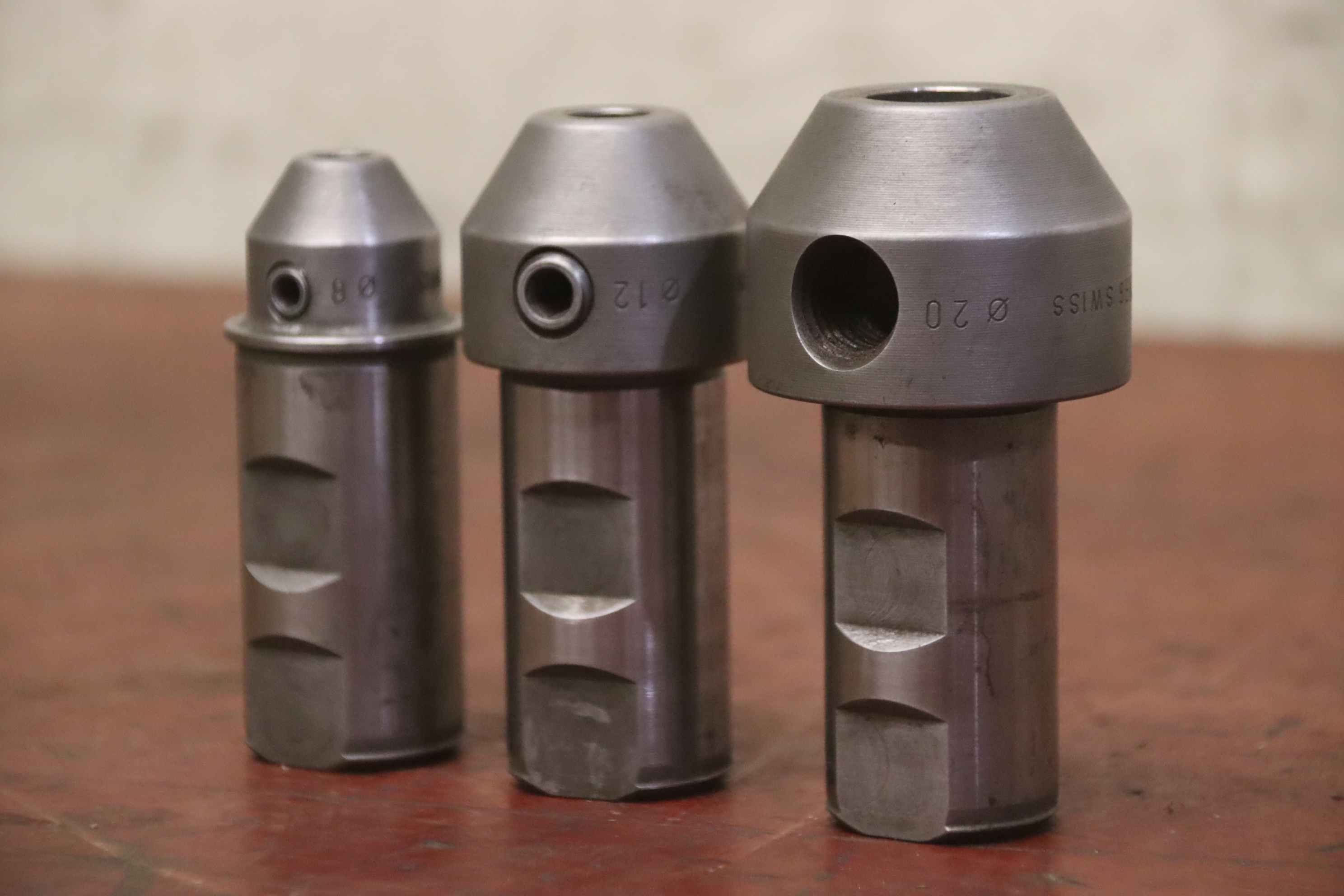 Tool holder, milling holder, milling tool, adapter, intermediate sleeve, reducing sleeve, Weldon reduction -Manufacturer: Dornag Swiss, Milling holders: Adapter cylinder Weldon shaft - reduction Weldon 3 pieces -Type: Dia 32 Ø8/12/20 mm -Price/Delivery: complete -Transport dimensions: 100/52/130 mm -Weight: 1.8 kg/total