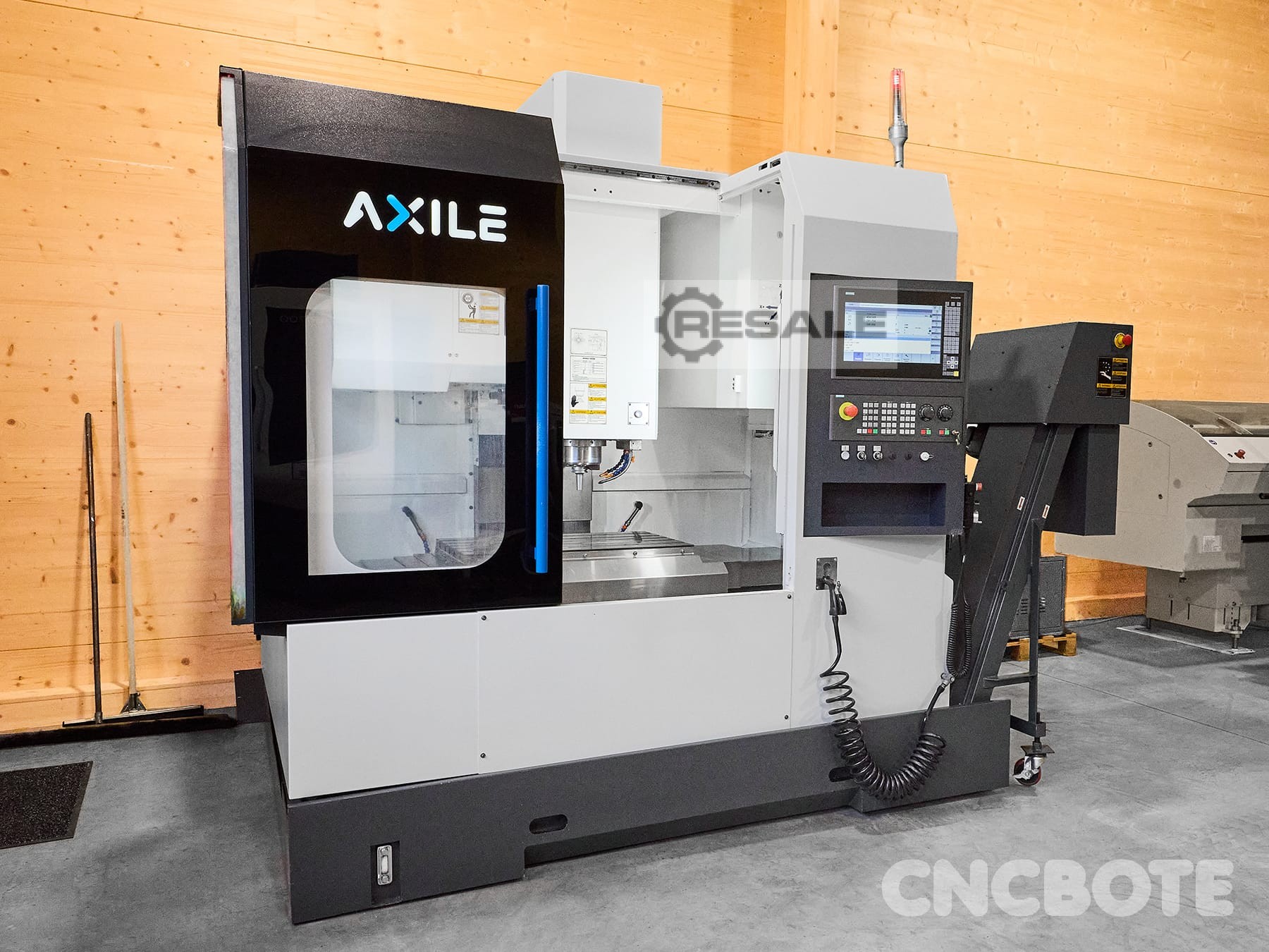 Technical data: Manufacturer: Axile Type: V5 Year of construction: 2017 (commissioning 2021) Control: Siemens 840D SL Touch Travels: X 800 mm, Y 500 mm, Z 500 mm Spindle hours: approx. 2,500 h Switch-on hours: approx. 5,600 h Spindle Speed: 24,000 rpm Work table Table size L/W: 900 x 520 mm Tools Tool holder: HSK63 Tool changer: 24-fold Dimensions and weight Weight: 4,200 kg Condition Condition: Used Functional: Tested and fully functional Other equipment and accessories included: Internal mould cooling IKZ 20bar Chip conveyor Coolant gun Preparation Blum touch probe Direct measuring system Intelligent editing function – axial accuracy control – Spindle vibration monitoring