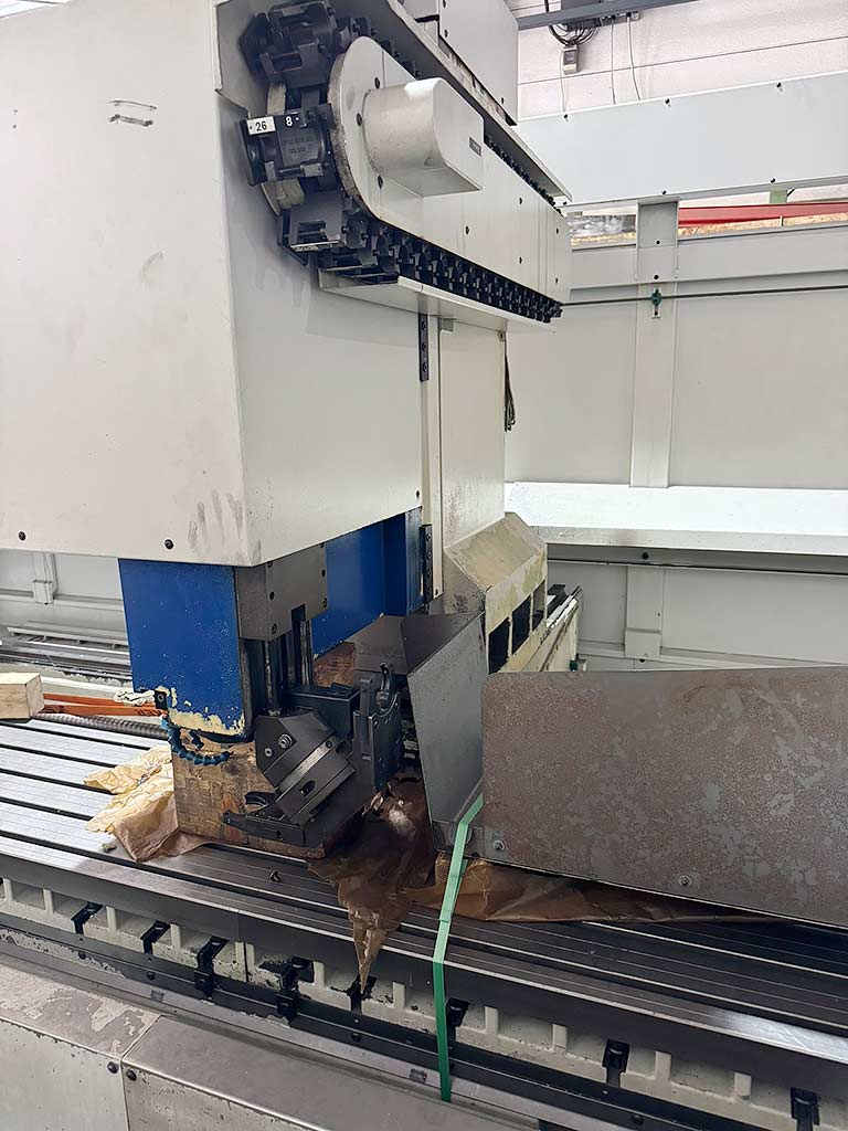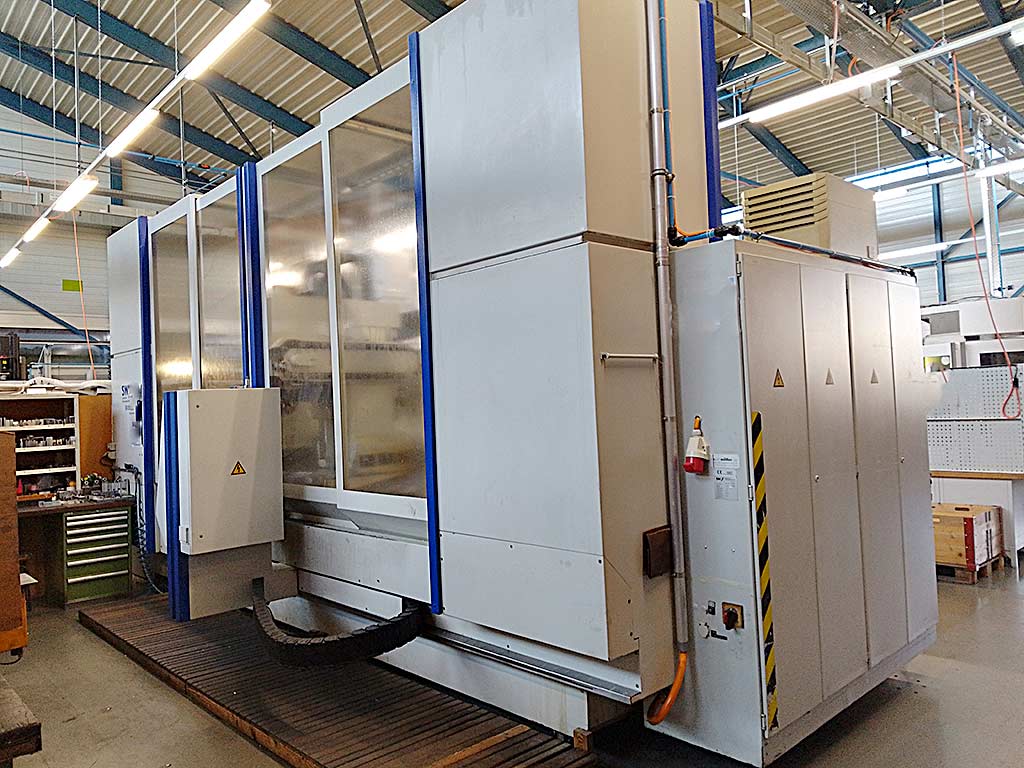 A CNC double-station milling machine Schwäbische Werkzeugmaschinen with 3 axes is available. Stations: 2, travel X/Y/Z: 700mm/500mm/500mm, positioning accuracy: +/-0.02mm, position scatter: +/-0.01mm, rapid traverse: 25m/min, feed force: 8500N. Machine dimensions X/Y/Z: approx. 6700mm/3200mm/3200mm, weight: approx. 11500kg, control: Siemens Sinumerik 840. The left sliding cover is defective, however another one from stock can be adapted for it. Documentation available. An on-site inspection is possible.