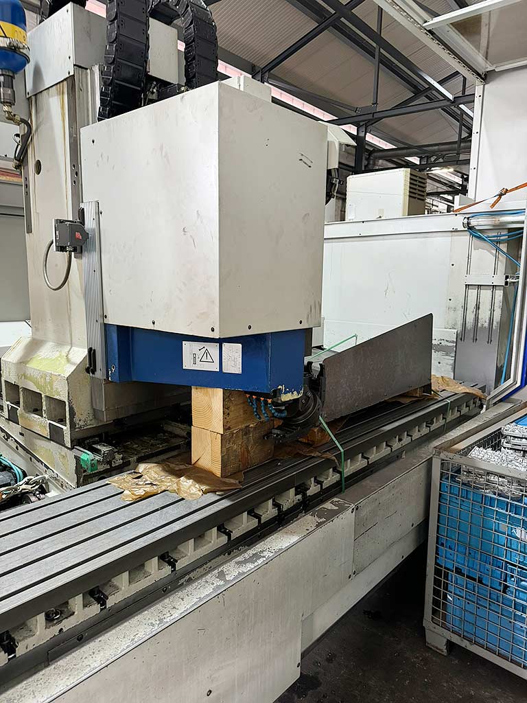 CNC portal machining center Type: FVP 50 CNC Manufacturer: TYC Control: Heidenhain X: 1400 mm Y: 200 mm Z: 600 mm Max spindle speed: 15000 rpm Tool holder: ISO 40 Table: 1600 × 1000 mm Max workpiece weight: 4000 kg Passage between columns: 1250 mm Shut hight table-crossbar: 700 mm Machine weight: 9500 kg In good condition, under power Find more here - / Contact us at -