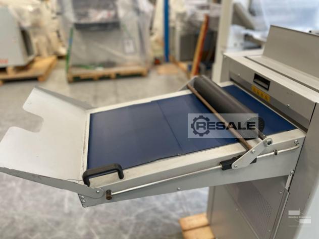 folder creaser gluing machine double crease head, 1 head to use for perforation as option 3 folding pockets + gate fold glue system Format 50x100cm up to 480 grams machine very well suited for covers with flaps, heavy stock gate fold brochures etc optional pocket folding possible MHGraphics is Fidia dealer. we can organise installation and instruction by trained mechanic Available: immediately/sofort