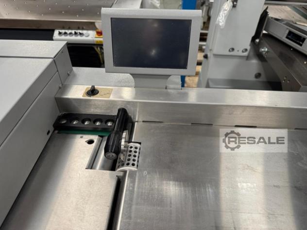 Format range: Box length: 80-535 mm Box width: 50-400 mm Equipment: motorized right turn / back dust margin, laser counter, speed infinitely adjustable via potentiometer. Packing scheme: 1–4 rows / layers, results in 16 possibilities. Overhaul 2025: cleaned, checked, painted, new belts. Machine can be viewed by appointment while running.