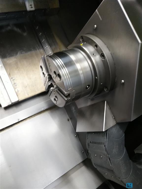 turning diameter:325 mm turning length:600 mm total power requirement:35 kW spindle drive:25 kW spindle turning speed range:5000 U/min speeds of tool:4500 U/min rapid traverse X-axis:60 m/min diverse toolholders:VDI 40 rapid traverse Z-axis:45 m/min weight of the machine ca.:6,5 t dimensions of the machine ca.:3,5 x 2,5 x 2,1 m Machine with SIEMENS 840 D control power line with shopturn - C and Y-axis, driven tools - bar loader IRCO ILS-RBK - coolant device with coolant throough revolving head - Revolver - counter spindle - chip conveyor - collet clamping - part catcher
