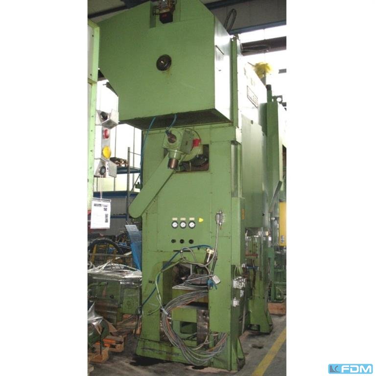 pressure:100 t distance between columns:1230 mm stroke:20 - 200 mm no. of strokes:20 - 60 /min distance table/ram, max. stroke up, adjustment up:650 mm table surface area:1050 x 750 mm table height over floor:760 mm side window:540 mm ram surface:1000 x 750 mm ram adjustment:100 mm power requirement:18,0 kW weight:20,5 t Dimensions (WxDxH):2,8 x 1,9 x 4,3 m infinitely variable drive:PIV clutch:pneumatic overload protection in ram:hydraulic ram counterbalance:pneumatic ram adjustment:motoric