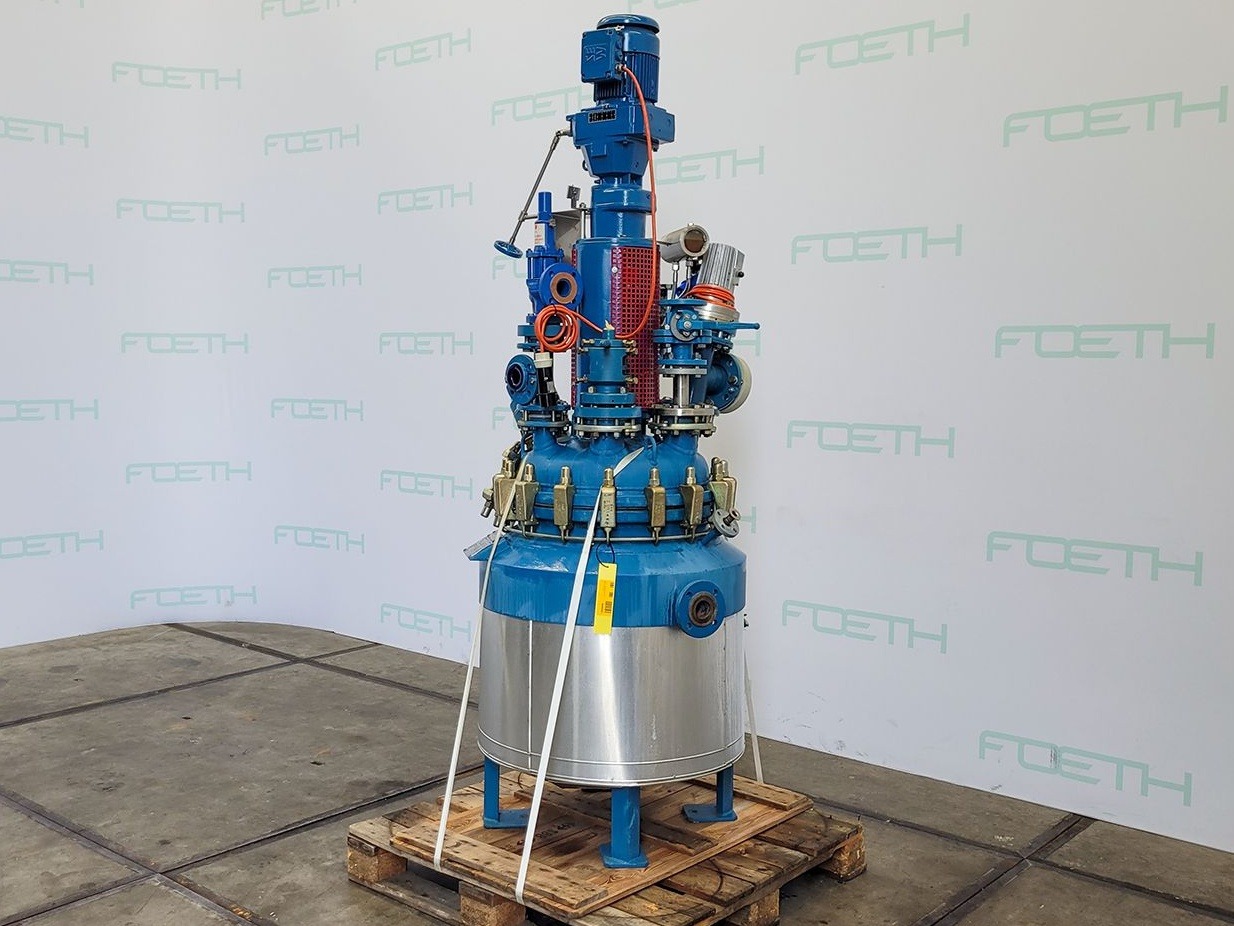 General SKUR0915 MakeTechnoglass (vessel) / Tycon (top part) (Ita) LocationBarneveld Type5445 ltr Pressure Working pressure6 Bar Vacuum possiblecheck Working pressure jacket6 Bar Vacuum possible jacketcheck Main Features MaterialGlass Volume7260 Ltr. Motor15 KW Specified Features - Glass-lined Reactor Reactorcheck Capacity7260 ltr Vessel sizesdia. 1800x3190mm Dished bottomcheck Dished top sidecheck Manholedia. 500mm Top connectionsDN150 (5x) DN250 (2x) Outletdia. 100mm With jacket710 ltr Max. temperature-30/200 Degr.C With paddle stirrercheck Motor15 kW 380 Volt (Ex) Glass Reactors MaterialGlass - Enamel Information No.5745 / 2705 Year of constructionvessel part 1996/ top part 1985 Floorspace2,3x2,3 M Total height5,9 M Weight9000 Kg ATEX compatiblecheck Extra SpecificationsClamped topFine chemicalsOther chemicalBiotechnologyAgrochemicalsCatalysts & fi ...