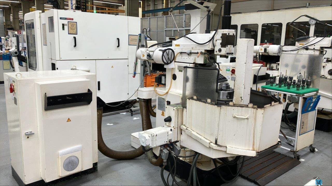 Universal milling machine Deckel FP1 Machine Operating voltage: 380/400 volts without feed in y direction, with angle table, work surface with 4 T-slots Condition see pictures Errors excepted!