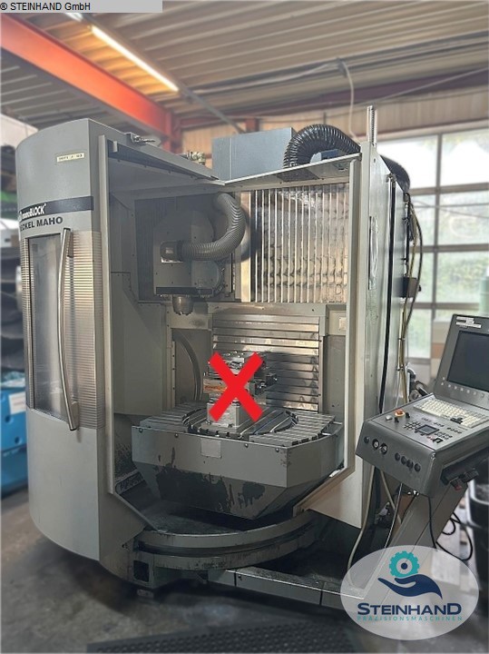 x-travel:1.250 mm y-travel:710 mm z-travel:710 mm table surface area:1500 x 800 mm table load capacity:800 kg turning speeds:12000 1/min spindle drive:15 / 10 kW control:MILLPLUS iT HEIDENHAIN spindle taper:SK 40 tool change unit:60 Pos. capacity:44 kVA weight of the machine ca.:10,5 t dimensions of the machine ca.:3,5 x 2,65 x 2,65 m 5 axis simultaneously machining center, B-axis (-120° / +30°), NC-rotary-table integrated in rigid table, direct measuring system, 3D probe infrared, HEIDENHAIN TS 640, internal coolant supply 40 bar, 600l, flushgun, chipconveyor, mode 4, 3D quickset software (no hardware), Higher noise in rush on X-axis and roundtable approx. 48.500 hours "machine on" / approx. 18.000 hours "spindle on"