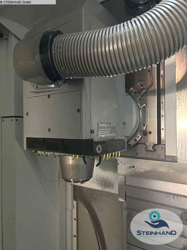 x-travel: 630 mm y-travel: 560 mm z-travel: 560 mm control: iTNC 530 Heidenhain NC-Swivle milling head:: turning speed range - main spindle: max. 18.000 min/-1 power capacity - main spindel: 10 / 15 kW max. Torque: 130 / 87 Nm tool taper: HSK-A63 swivellable: NC: +30 / -120 ° work table:: table surface area: 1.000 x 600 mm T-slots: 9x 14 x H7 max. table load: 700 kg tool magazin:: number of toolpositions: 60 pos. tool taper: HSK-A63 total power requirement: 49,7 kVA weight of the machine ca.: ca. 11,0 t dimensions of the machine ca.: 4,5 x 4,5 x 3,5 m Documents: Chip conveyor: Coolantsystem: high pressure coolant: turning milling head: elektr. hand wheel: Rotary screen: paper band filter: Spray gun: exhaust fan: indexing attachment: EA-733.20 Tailstock: CNC - MachiningCenter Universal DECKEL MAHO - DMU 60 monoBLOCK - 5 Axis - Swivel-Millinghead The data for this ad was c ...