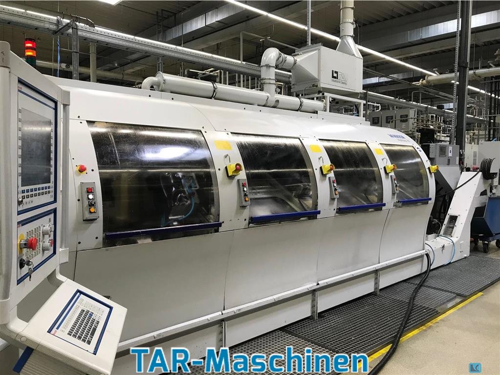 Article: Transfer machine Manufacturer: Mikron Type: Multistep XS Yob: 2007 Number of modules: 4 (1 loading module, 3 process modules) Number of spindles: 6 Rotational speed : 15.000 rpm Control: Bosch Rexroth MTX Coolant unit: Knoll VRF450/2100 Extraction: Elektrostat / LTA 3D tool path correction 5/6-axis transfórmation Machine dimensions: 9.300 mm x 3.400 mm x 3.500 mm Wight per processing module: 4,5 t Wight per loading module: 2,5 t Clamping force: 10 kN Workpiece cange chip-to-chip time: 6s Workpiece: Diameter: 140 mm, Length: 180 mm, Weight: 21 kg Tool changer: Tools (2 discs with 12 positions) / processing module: 22 Weight of tool disc: 5 kg Max. tool weight: 2,5 kg Max. free tool length: 186 mm Max. tool diameter: 63 mm Max. tool diameter with free position: 105 mm Shortest chip-to-chip time:
