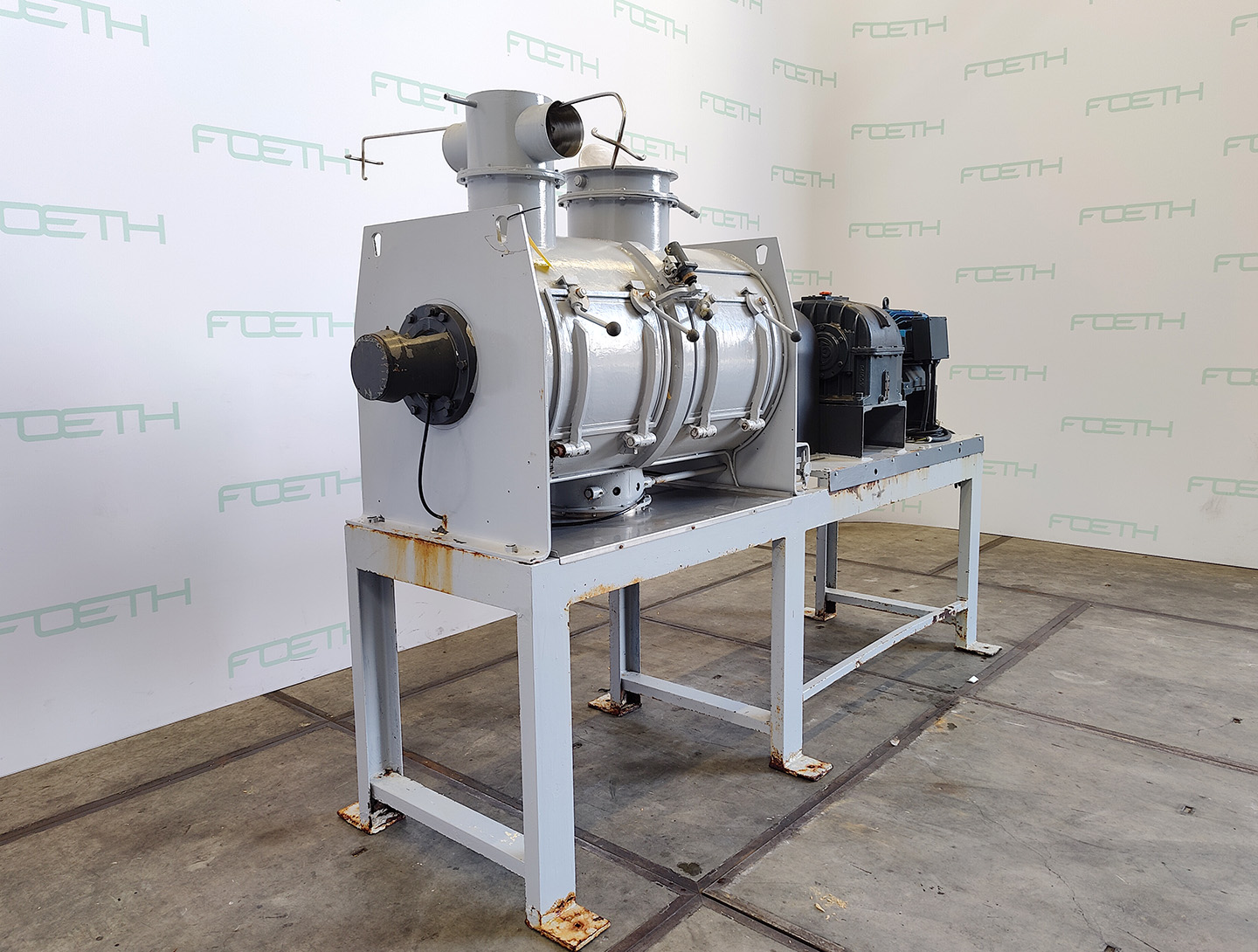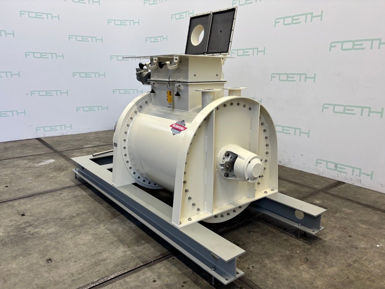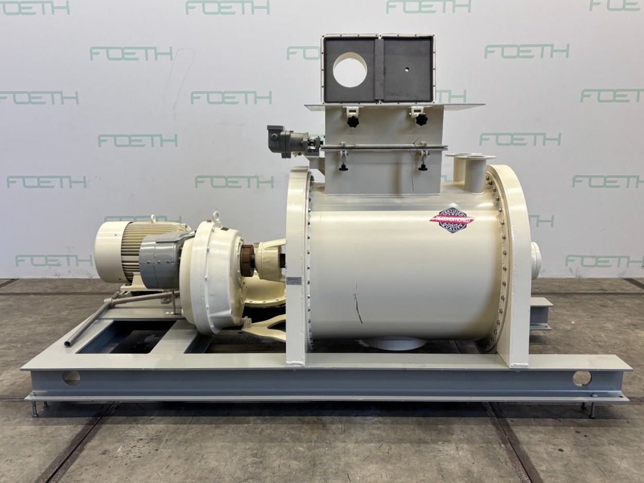 General SKU296W564 MakeLoedige TypeFKM 600D2Z No.5080 Year of construction1969 Mounted on framecheck Main Features MaterialStainless steel Volume600 Ltr. Motor30 KW Specified Features - Powder turbo mixer Powder turbo mixercheck T-arms5 Capacity730 l Useful capacity600 l Trough sizesDia. 780 x 1200 mm Top connectionsDia. 250/300 mm Inspection hatch(2x) 450x380 mm Outlet240 x 180 mm Glands air purgedcheck Motor30 kW, 380/660 volt, 1460 rpm Speed mixing shaft134 rpm With lump breaker2x Motor5,5 kW, 220/380 volt Speed lumpbreaker2910 rpm MaterialStainless steel 1.4301 (304) Information LocationBarneveld Floorspace3,3 x 1,5 m Total height2,5 m Weight2260 kgPowder turbo mixersCatalysts & fillersFeed additivesOther pharmaceuticsCosmeticsFood additivesSugarAnimal feedOther feedConfectionerySolid pharmaceuticsDyes & pigmentsMinerals & inorganicSpicesOther chemical ...