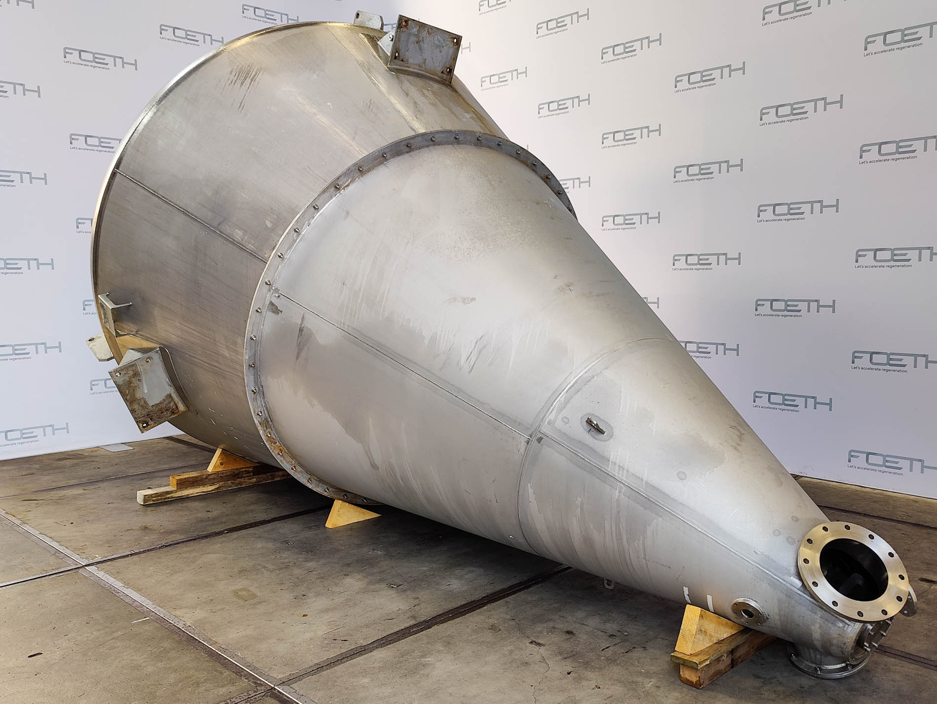General SKU014G031 MakeMachinefabriek Vrieco Zelhem B.V. TypeS 70 RB-S Mach.No.52624 Year of construction1978 Pressure Working pressure0.2 Bar Working pressure jacket0.5 Bar Main Features MaterialStainless steel Volume7000 Ltr. Motor15 KW Specified Features - Conical mixer Conical mixercheck Capacity8700 Ltr (7000 ltr nett) Largest cone diameter2950 mm Cone height4300 mm Dished topcheck Manhole500 mm With stainless steel armcheck Top drivecheck Motor13,0/20,0 kW (380 V) Motor1,1/1,8 kW (380 V) Bottom bearing pintle bearingcheck With jacketcheck Max. temperature120 degC Outlet with sliding valvecheck MaterialStainless steel 1.4541 (321) Information LocationBarneveld Floorspace3,0 x 3,0 m Total height4,3 m Extra Specifications-- RECONDITIONED -- Conical mixersCatalysts & fillersFeed additivesPaper & otherDiscountOther pharmaceuticsSugarAnimal feedOther fee ...