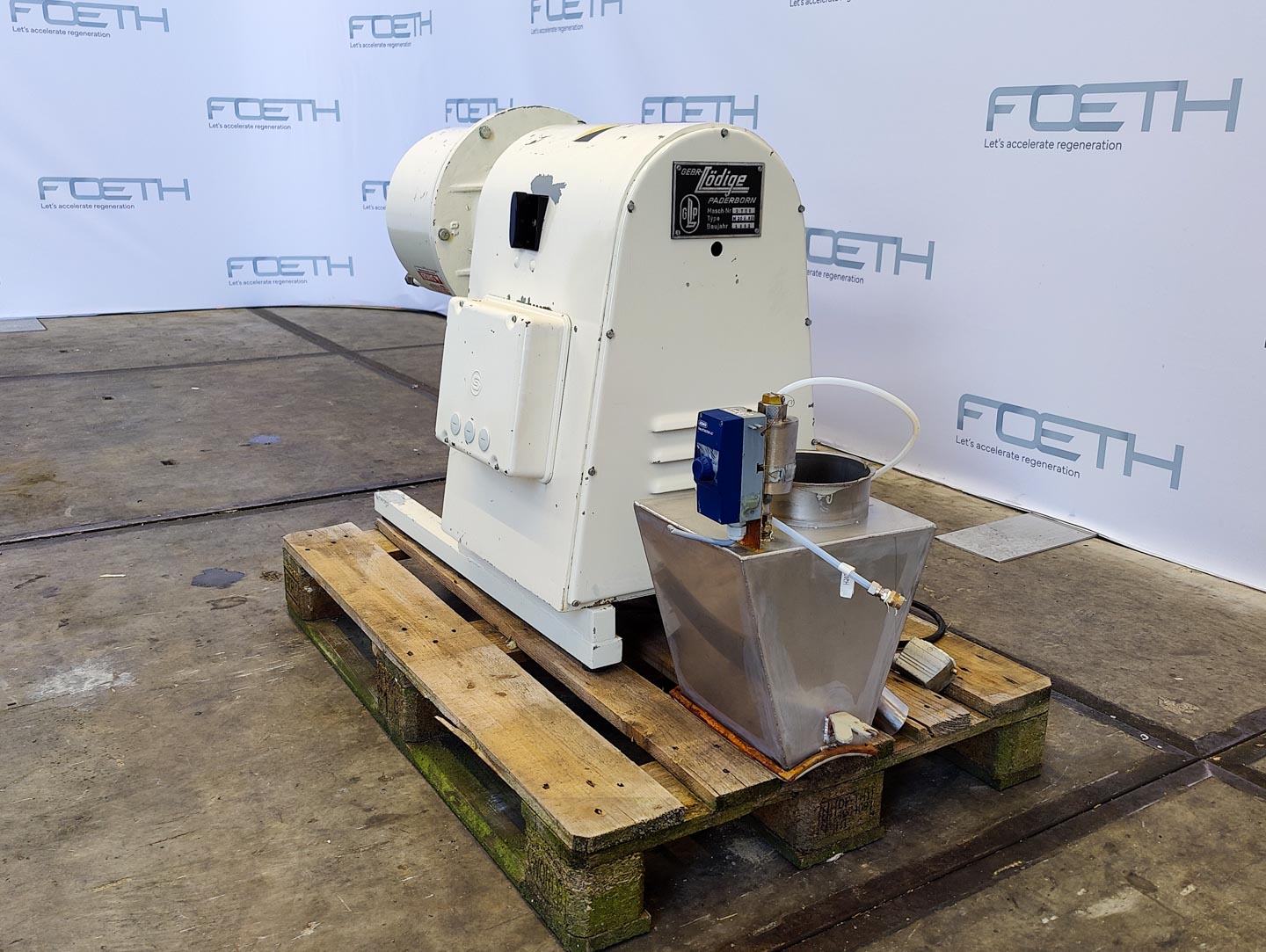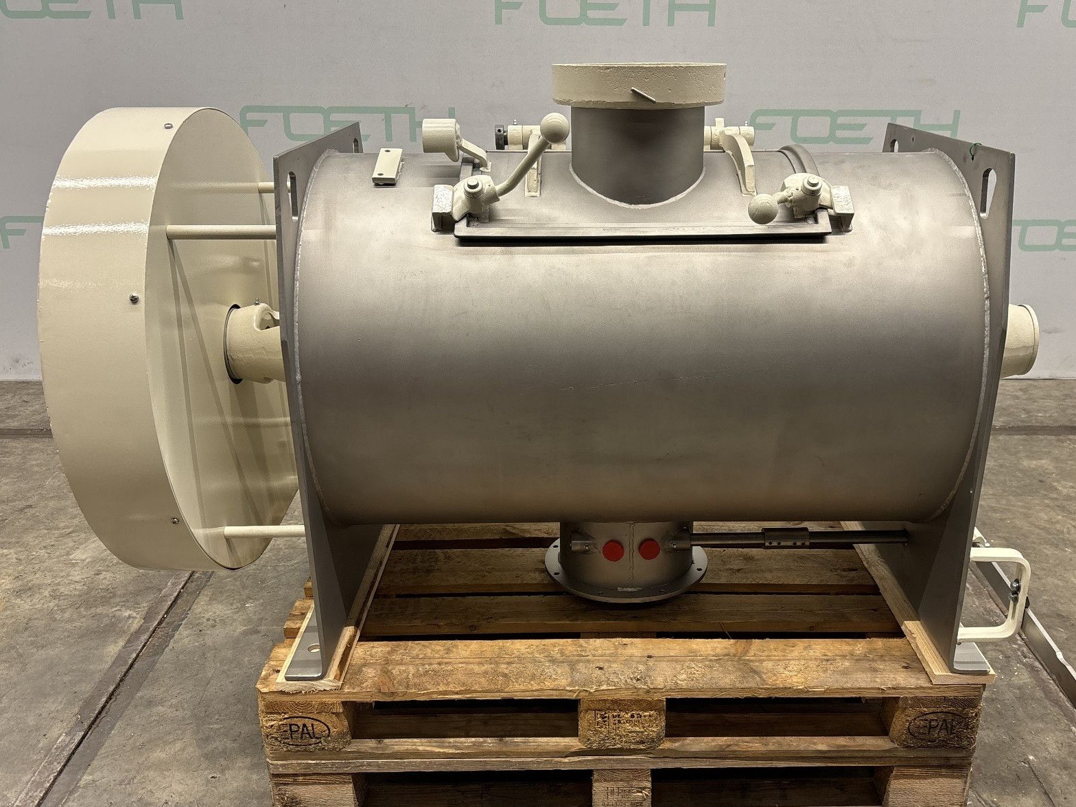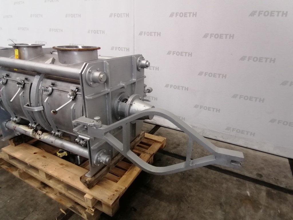 General SKU008H011 MakeLödige Paderborn TypeCB-60 P No.14.335 Year of construction1998 LocationBarneveld Pressure Working pressure0.5 Bar Working pressure jacket0.5 Bar Main Features MaterialStainless steel Volume550 Ltr. Motor110 KW Specified Features - Paddle mixer Paddle mixerRing layer mixer/Ringschichtmischer Continuous mixercheck Trough sizesdia. 600x2200mm With covercheck Inlet450x350mm Outlet280x300mm With jacket85 l Max. temperature95°C Motor110 kW (400V, 1480 rpm) Speed mixing shaft1200 rpm MaterialStainless steel Information Floor space3,3x2,4 M Total height1,3 MPaddle mixersDiscountLoedigeMixers > Paddle mixersDiscountBrand > Loedige What you can expect from Foeth: -- Machine is in working condition -- At a reduced price compared to new -- Ready for shipping to any destination worldwide -- You are welcome to inspect the machine in Barneveld, The ...