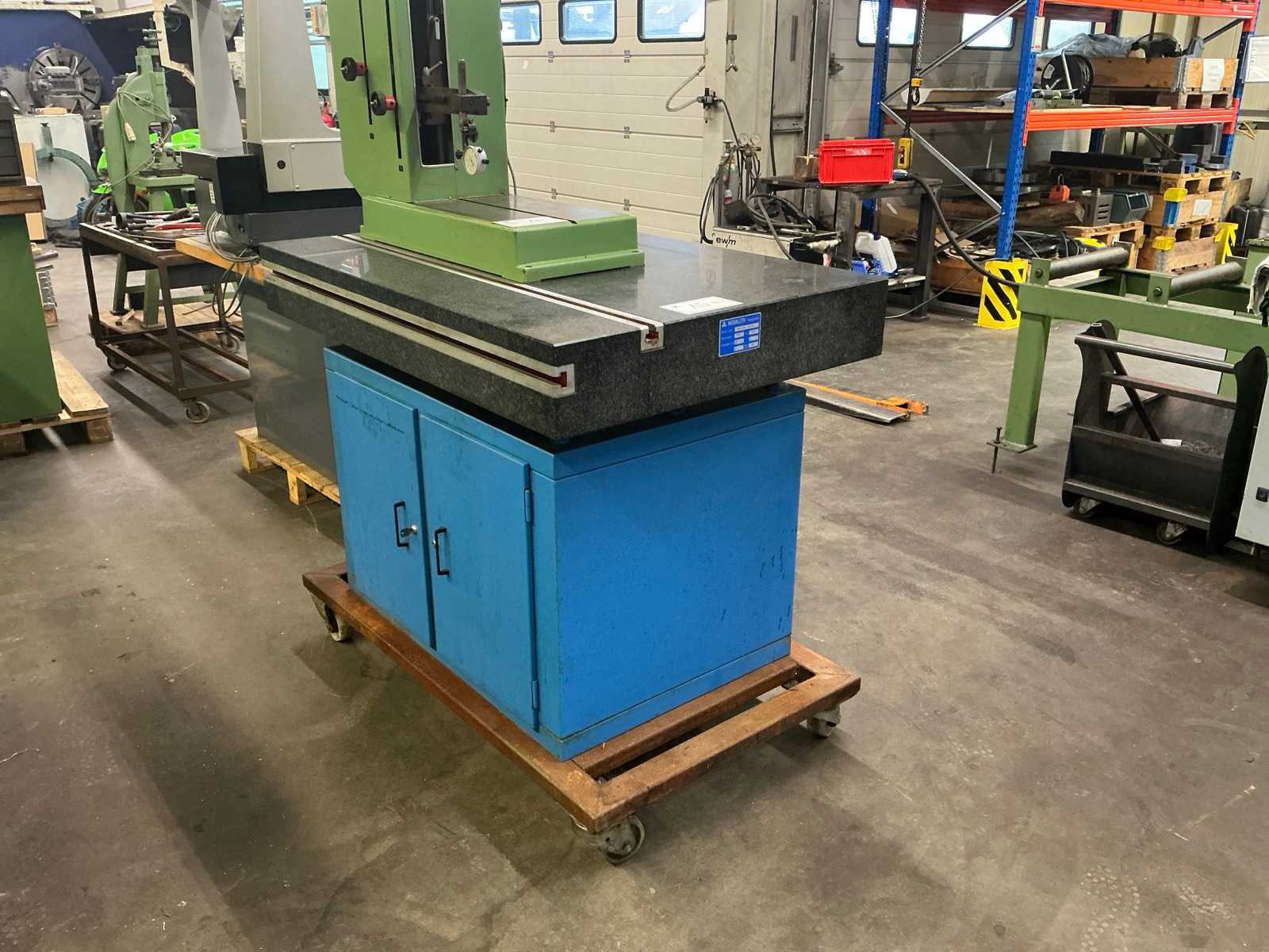 Measuring plate made of hard stone, dimensions measuring plate 1200x800x160 mm, accuracy 0.003 mm, weight measuring plate 450 kg, incl. mobile base without contents, without ROYAL coordinate measuring machine