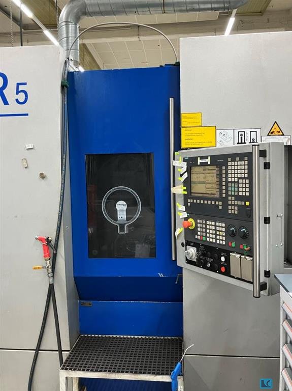 x-travel:1530 mm y-travel:530 mm z-travel:465 mm side by side, right side fixed table X =:925 mm side by side left side 2 axis table X =:780 mm control:Heidenhain TNC 640 tool magazin::122 SK 40 spindle turning speed - stepless:12.000 1/min Spindle Torque:120 Nm power capacity:22 kW Fixed Table Dimensions:920 x 540 mm Table load fixed table:2000 kg Max. parts size on fixed table:900 x 500 x 400 mm Diameter of integrated 2-axis rotary table:650 mm Table load rotary table:500 kg B-axis swivel angle:-90°/+110° ° / deg Max. parts size on rotary table:600 x 500 x 400 mm Max. Parts size over both tables:1500 x 500 x 400 mm internal coolant system feed:70 bar bar weight of the machine ca.:10,5 t dimensions of the machine ca.:3,65 x 2,53 x 2,81 m pendant hand wheel:HR 510 FS Measuring probe for work piece:Blum TC 52 The SpinnerU5 1530 5-axis machine with Heidenhain iTNC 640 control is as new ...