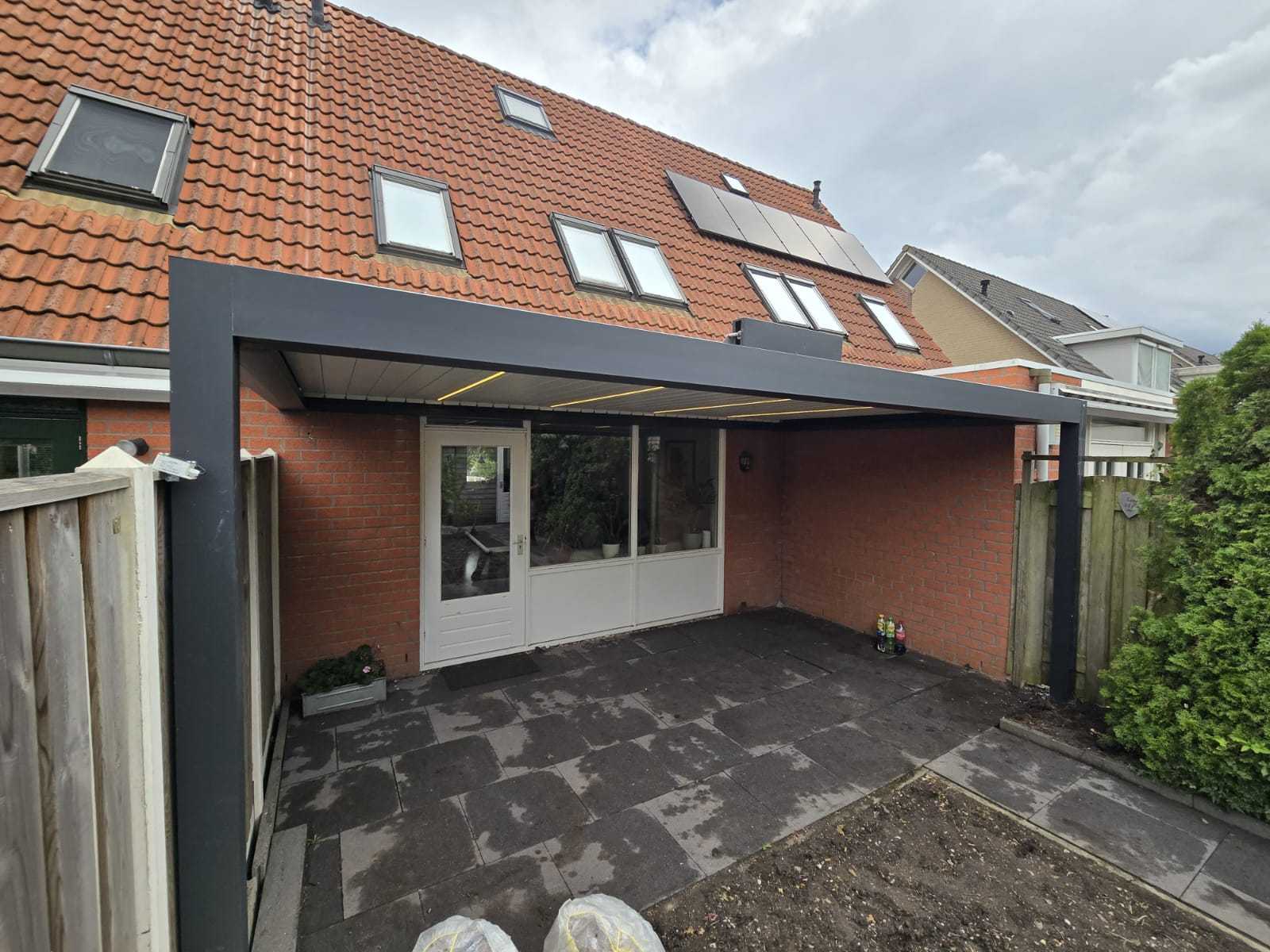 Featured; 1x wind/sun screen electrically operated, waterproof, led lighting, electrically operated with remote control, powder coat, 7021 anthracite, Posts: 125mm x 125mm x 2.5mm, Slat size: 170mm x 35mm x 1.5mm, Beam all around slats: 180mm x 180mm, Snow load: 50-60kg/m2 Auction-ID: A1-40104-64