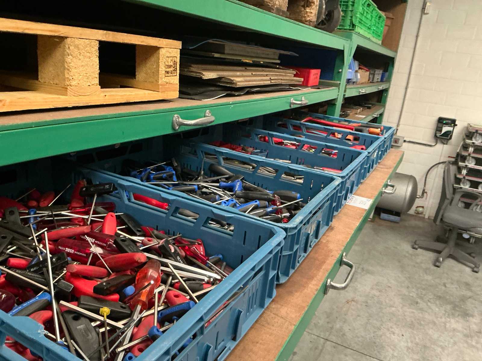 Including hex keys, saw brackets, screwdrivers, files, hollow punches, etc. / sorted in 10 plastic stacking crates with dimensions 600x400 mm Auction-ID: A1-44221-331