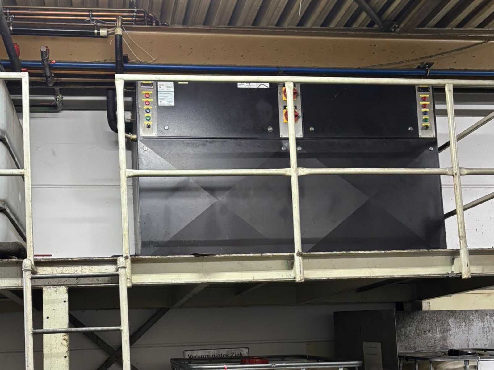 Plant Type: Industrial Process Cooling Plant / Chiller Manufacturer / Supplier: R. Tusa Kälte-Klima-Service Year of Make: 2004 Type: WS-45 CE marking: available Application area • Industrial process and machine cooling • Suitable for: Machine tools, production plants, hydraulic and oil cooling • Operating mode: Stationary indoor installation on steel platform Refrigeration system • Closed refrigeration circuit • Refrigerant: R507 • Max. refrigerant charge: approx. 25 kg • Direct drive compressor Compressor data • Volume flow: approx. 47.25 m³/h • Nominal speed: approx. 2,900 rpm • Compressor end pressure: approx. 30 bar Motorization • Electric motor with approx. 20 kW nominal power • Three-phase connection • Industrial-grade design for continuous operation Cooling medium • Secondary circuit with water or water-glycol mixture • Buffer/storage tank inte ...