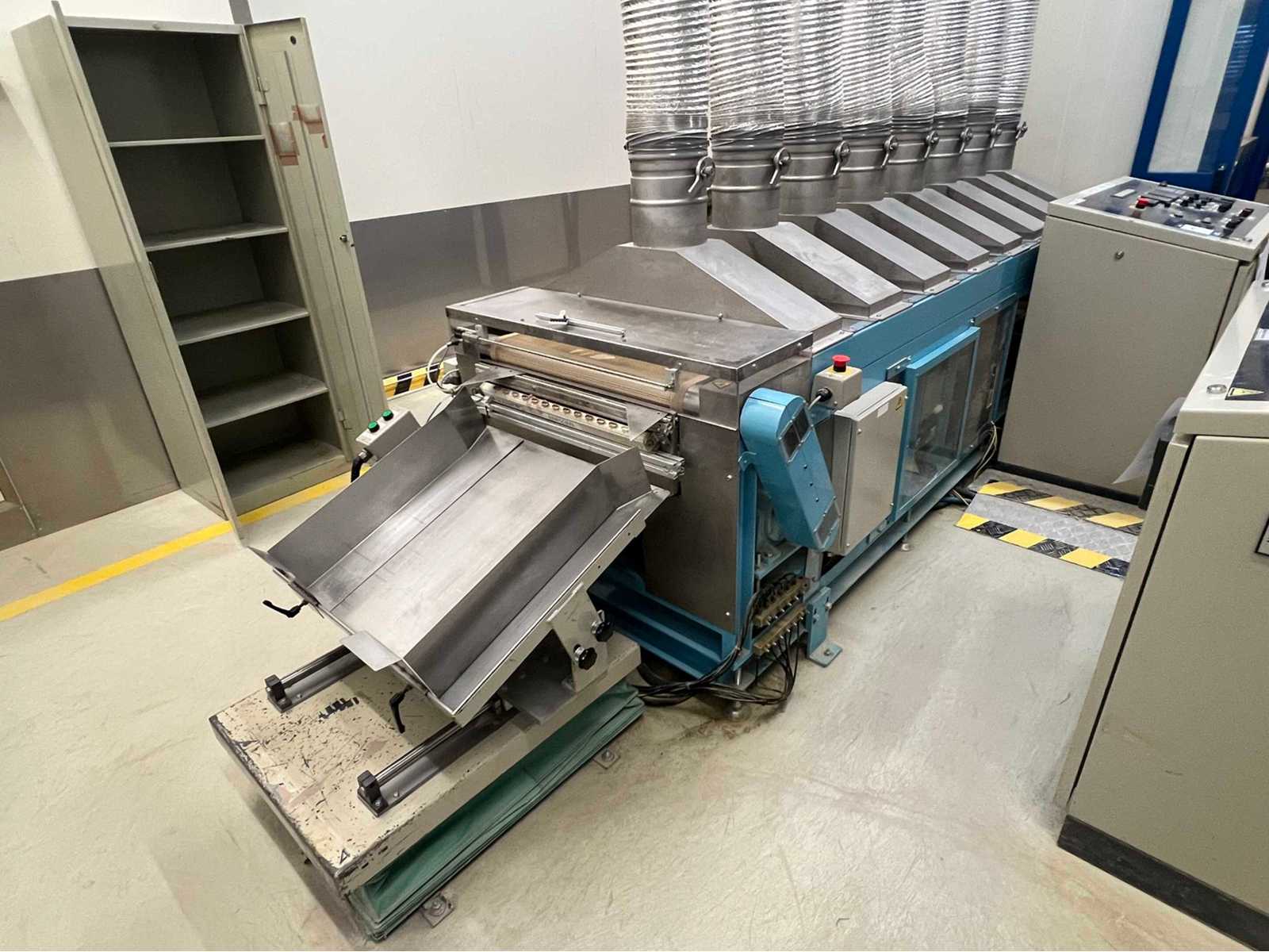 Surface treatment line comprising of a manual infeed unit, Qui-Clean blow model DTH-701 surface cleaning unit, s/No 039, year 2001, Hotta model AP-0109ST-1 surface treatment tunnel with 2 zone, electric heat tunnel with 8 zones plus cooline tunnel s/No 00176400, Year 2001, rise and fall outfeed table including 5 x material trollies Auction-ID: A1-45187-9