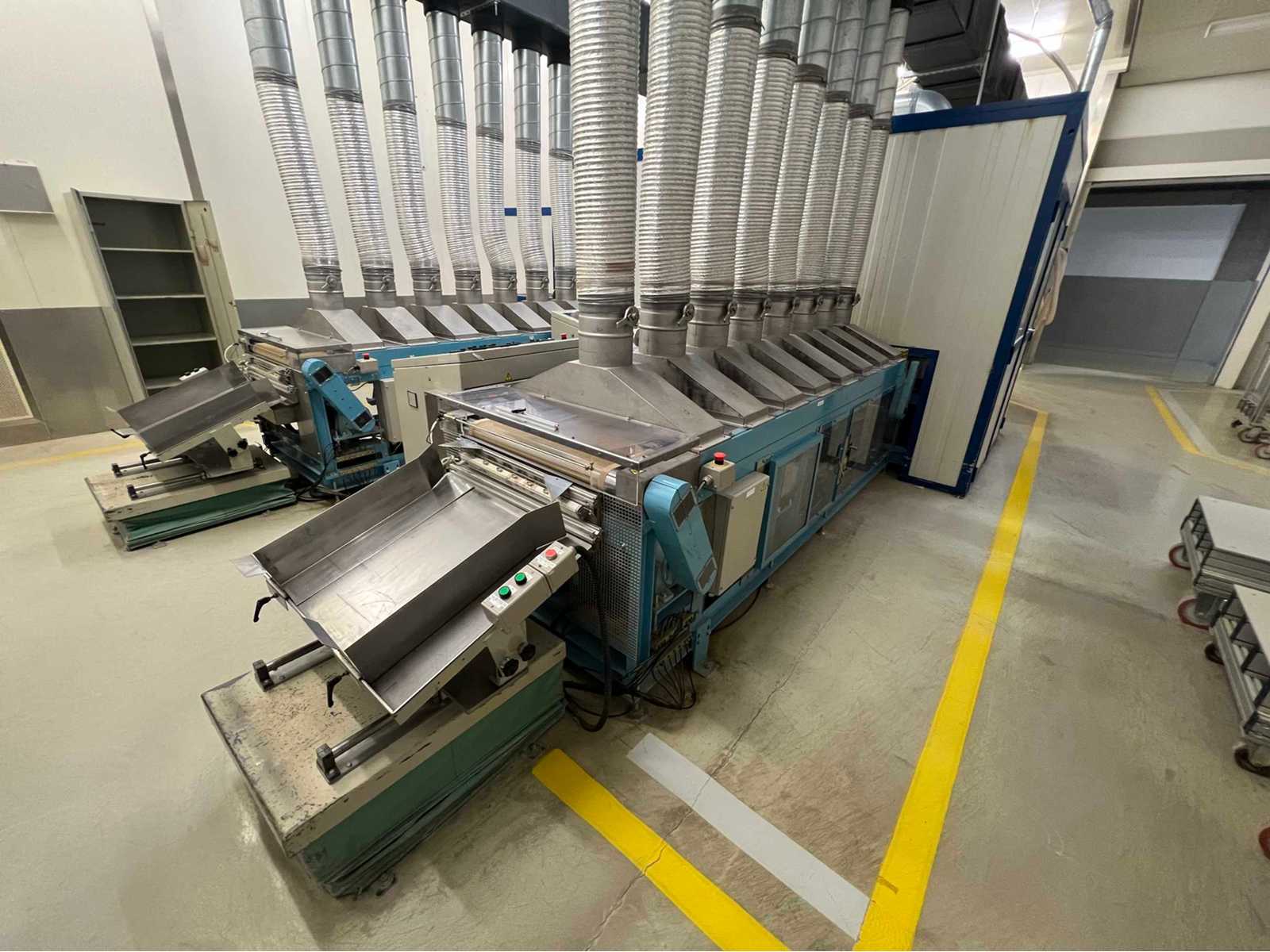 Surface treatment line comprising of a manual infeed unit, Qui-Clean blow model DTH-701 surface cleaning unit, s/No 040, year 2001, Hotta model AP-0109ST-1 surface treatment tunnel with 2 zone electric heat tunnel with 8 zones plus cooline tunnel s/No N/A, Year 2001, rise and fall outfeed table including 5 x material trollies Auction-ID: A1-45187-10