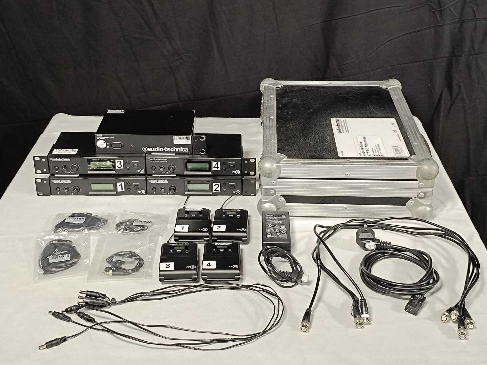 https://www.audio-technica.com/en-us/m3-system Sold with the following accessories incl. antenna set: 4x M3T-H1, IEM transmitter (754-787MHz) 4x M3R-H1, IEM receiver (754-787MHz) 1x MCB4, 4-way antenna combiner 4x EP3 Earphones for M3-H1 IEM 4x Coxial Power Connector Link-Cable 4x BNC Link-Cable 1x Power Supply for MCB4 Combiner 4x power supply for M3T-H1 transmitter 4x stub antenna 1x ATW-A49 Active Directional Antenna (400-900MHz) 1x BNC cable 3m Auction-ID: A7-45172-48