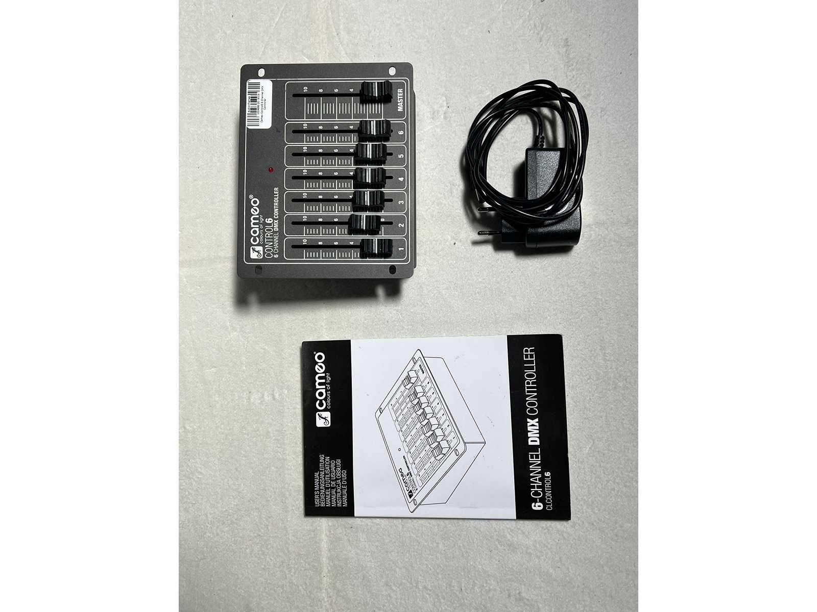 https://www.cameolight.com/en/solutions/dj-musicians/lighting-control/ dmx-controllers/2086/control-6 Sale with the following accessories: 1x Power Supply 1x Manual No warranty on burners and bulbs. Auction-ID: A7-45172-37