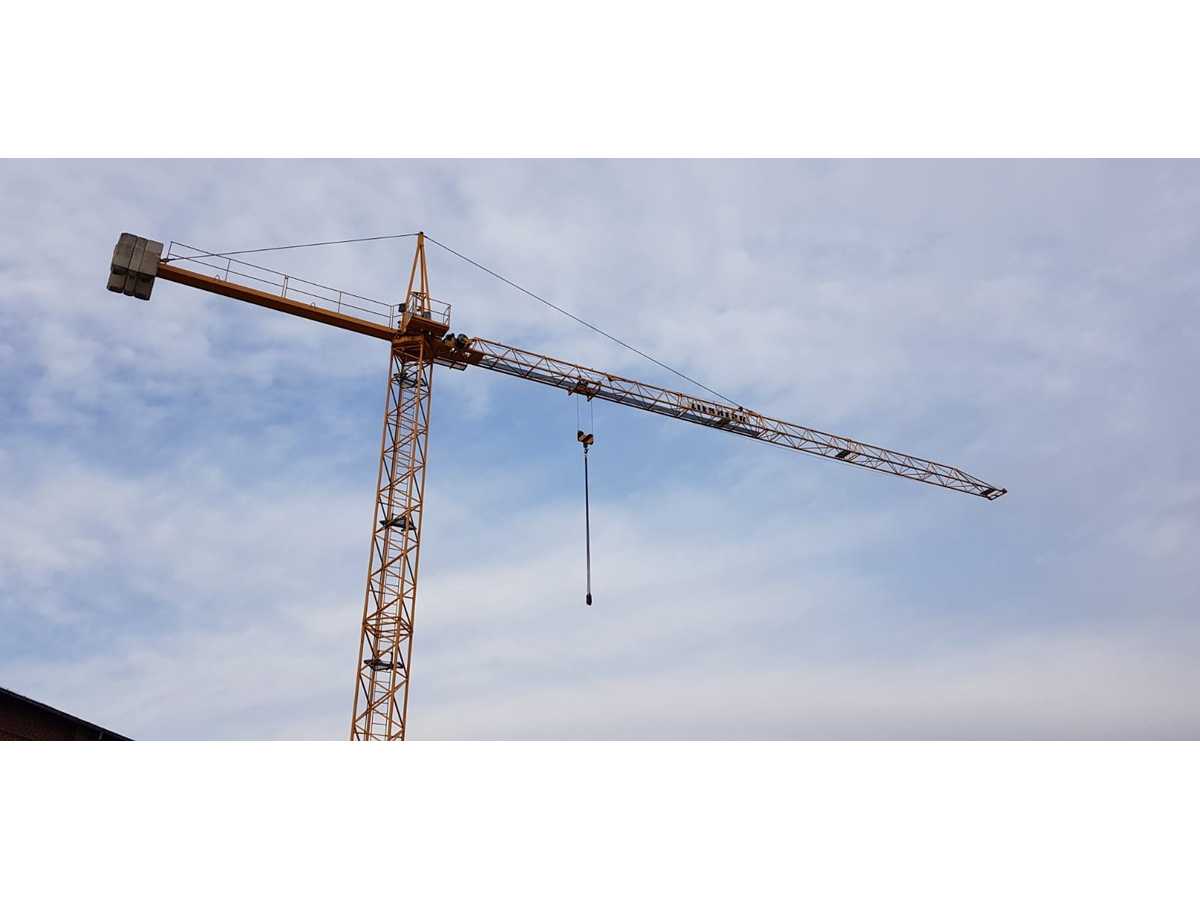 Operating parameters: Max. lifting cap. 2,500 kg @13.6 m; 1,000 kg @30 m; lifting height 21 m; boom length 30 m Workpiece capacity: Construction materials handling; medium-reach lifting up to 30 m radius Supported edges: Construction loads (steel, concrete, pallets, equipment) Edge types: Lifting; hoisting; positioning Included equipment: Central ballast 15.0 t; counter jib ballast 3.9 t; boom 30 m; tower structure Tower crane with 30 m boom and max. lifting capacity 2.5 t (1 t at full reach). Auction-ID: A7-44956-3