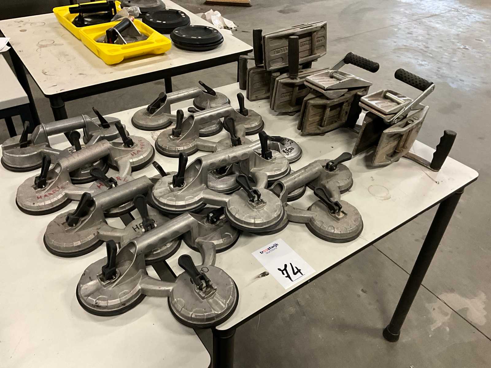 9x glass carrier with 3 suction cups, 2x suction cup Powr-grip, 6x clamp Auction-ID: A1-44279-74
