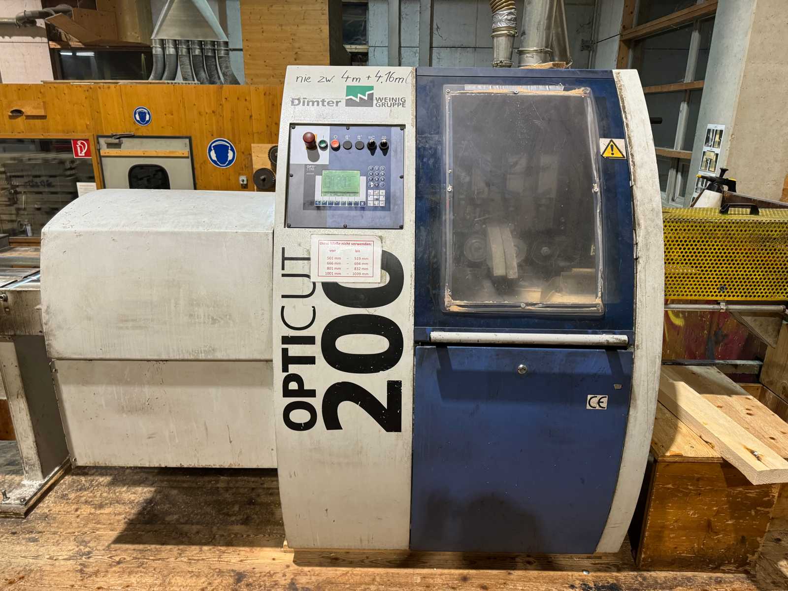 Input lengths min/max. 3000 - 5000 mm average 4000 mm Input widths min/max. 80 - 200 mm Input strengths min/max. 38 - 80 mm Timber cross-sections max. 200 x 50 Generally rectangular max. 150 x 80 mm Wood end length min/max. 700 - 1000 mm, average 800 mm Number of cuts / board on average 5 Curvature of the timber in all directions max. 10 mm per metre length Thickness tolerance +/- 3 mm Cut/cut tolerance +/- 0.8 - 1.5 mm (for wood texture with minimal resin content and even surface. min. tolerance up to 1 m fixed length max. tolerance for longer parts up to 2.5 m). Wood types: Softwood or hardwood Capacity of the system: Feed speed, max. 180 m/min. Infinitely variable Time per cutting operation, incl. brakes, 0.7 - 1.2 sec. Capping, Accelerating In order to obtain the practical output per day, it is necessary to work with one of the prod ...