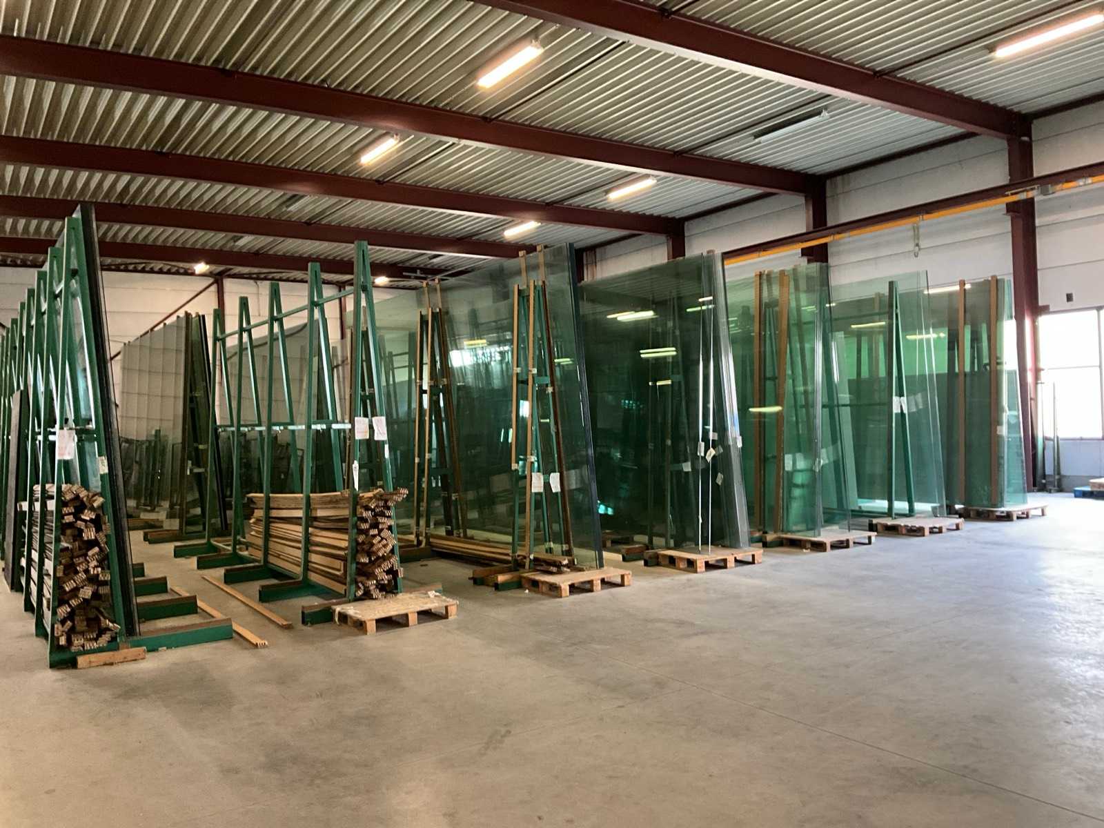 Batch of various types of safety glass in 17 trestles, various thicknesses 4, 6 and 8 mm, steel trestles are included Auction-ID: A1-44279-163