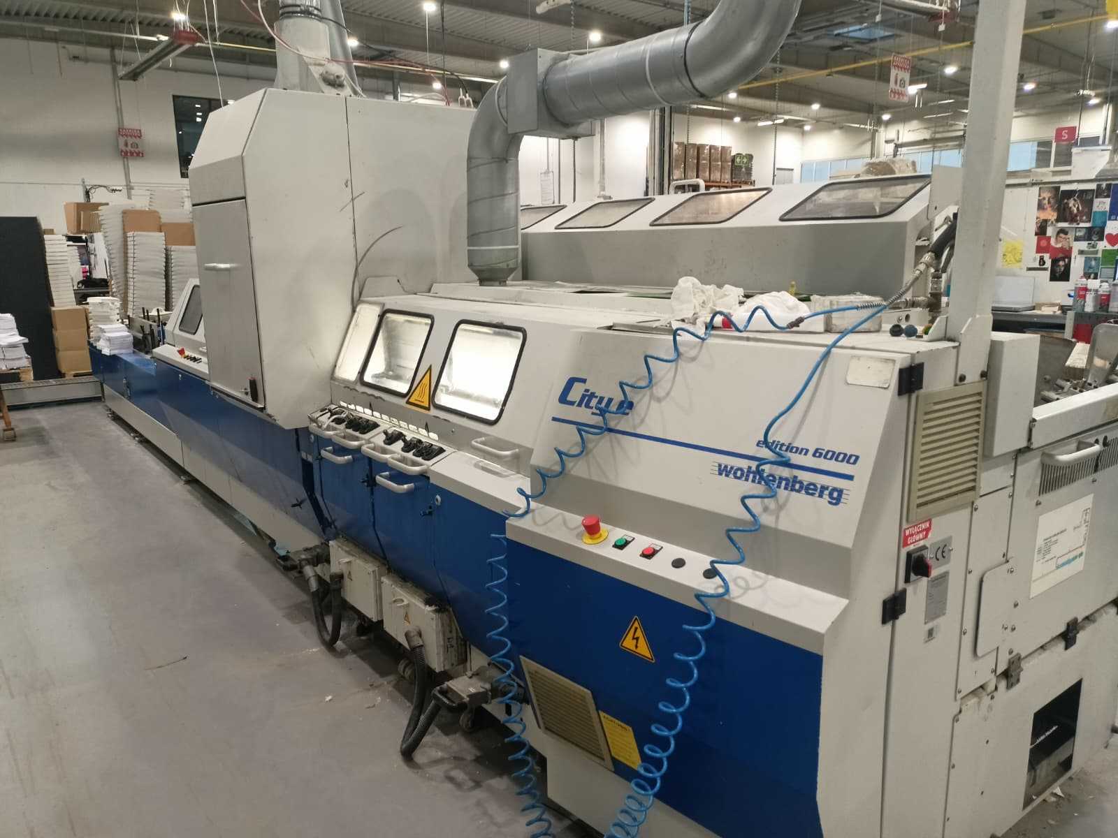 The 2007 Wohlenberg City E is a robust, automatic perfect binder ideal for bookbinding and printing shops. It features high flexibility, automatic and manual settings, and can handle a variety of formats. It combines productivity with intelligent automation, making it ideal for frequent format changes.The machine is sold without the VSS, the part on top of the machine marked with the number 1.The current mileage of the machine is displayed on the panel photo. Auction-ID: A7-40831-3