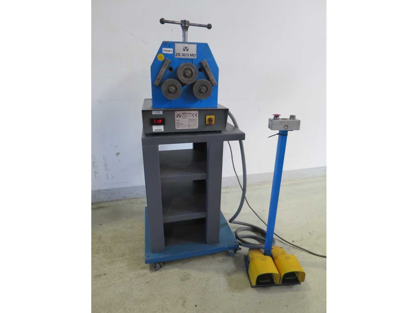 Profile bending machine with: >br>- Foot pedal right/counterclockwise>br>- Digital display>br>- 1 set of standard rollers>br>- 2 rollers are driven>br>- Working horizontally or vertically>br>round material solid 30 mm>br>square material solid 30 mm>br>angle steel 20 x 20 x 4 mm>br>flat steel 25 x 6 mm>br>axis diameter 20 mm>br>Working speed 11 rpm>br>Total power requirement 0.2 kW>br>Machine weight approx. 80 Kg>br> space requirement approx. 0.6 x 0.6 x 1.5 m Auction-ID: A7-44817-77