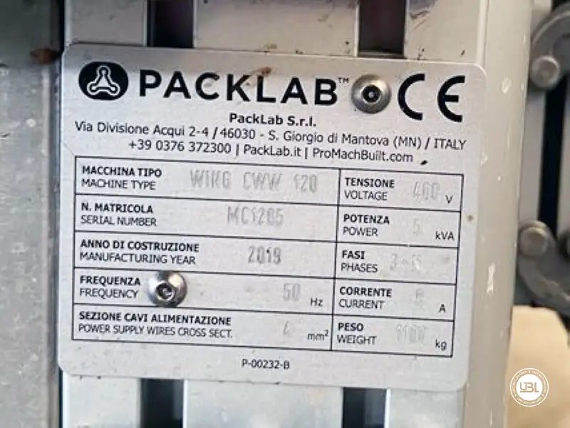 Technical Specifications & Performance Data The Used Linear Labeler Non Stop PackLab 2019 WING CWW 20 is a high-efficiency, second hand self-adhesive labeling solution designed for continuous operation in beverage production and industrial packaging environments. Optimized for wrap-around and front/back applications, it integrates seamlessly into a used bottling line alongside rinsing, filling, and capping equipment. Manufacturer: PackLab Model: WING CWW 20 Year of manufacture: 2019 Machine type: Linear self-adhesive labeler with non-stop dual stations Production speed: up to 20,000 bottles/hour (format and label dependent) Label applications: Wrap-around body labels on cylindrical containers; partial front and back labels on shaped containers Number of labeling stations: 2 (automatic interchange at end of reel, web break, or label absence) Container types handled: Glass bottles, metal c ...