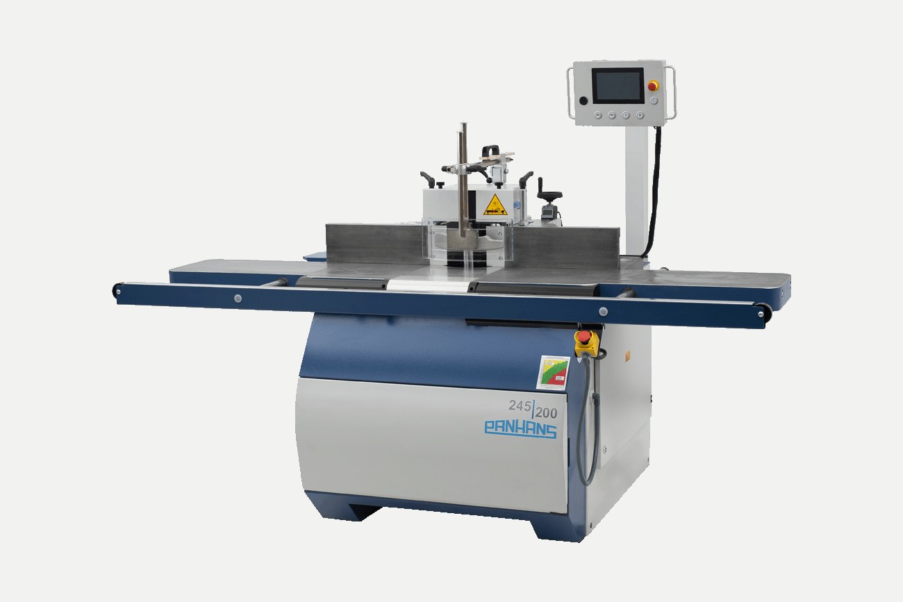 Motor output: 5,9 kW Spindle diameter: 30 mm reus: 3000 / 4500 / 6000 / 9000 U/min Panhans Type 259 swivel spindle milling machine or table milling machine for precise milling, profiling, and rebating of solid wood and wood-based materials. The machine has a swiveling milling spindle, enabling versatile machining at different angles. Ideal for carpentry, furniture making, and interior design. Includes Haffner feed device. The data for this ad was created with ModulMWS - the software solution of LogoTech oHG.