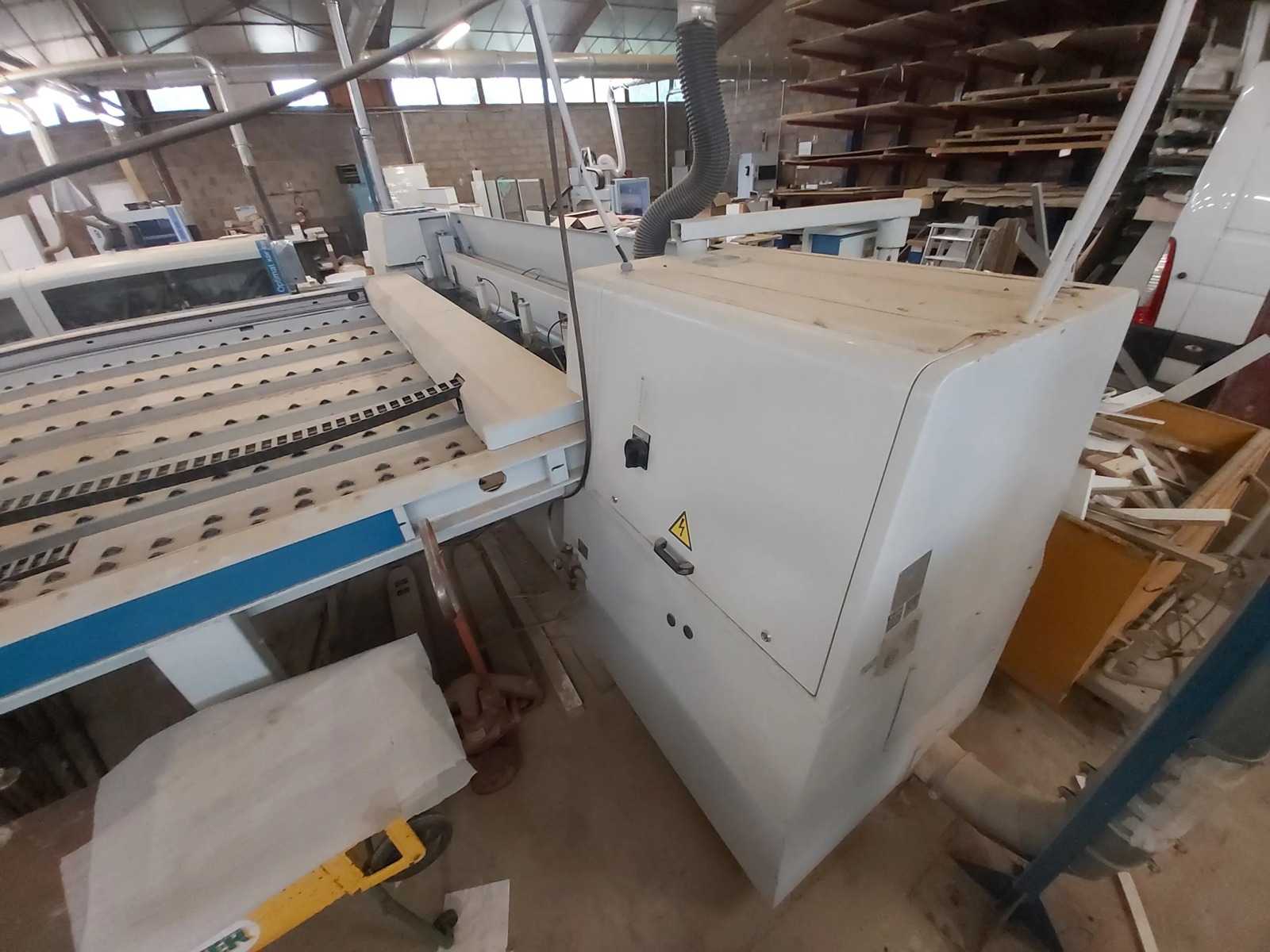 Code: 0177 Brand: NARDELLO - ITALY Model: SOTOS - CE Standard Cross cutting panel saw for postforming tops, edged and non-edged panels. Suitable for companies producing furniture, kitchens, bathroom furniture, furnishings, panels, and various - CE Standard Blade carriage unit: The blade carriage slides on linear guides with spheres blow-by and it is controlled by a brushless motor. Scoring unit group, whih is controlled by a brushless motor, allows to cut postformed edges and also special workings, which increase productivity of the machine. Pliers group and/or rear positioner are controlled by brushless motor and slide on linear guides with spheres blow-by. Cycles check-out is made by Numerical Control. Technical characteristics: Cutting width 1500 mm Cutting height 100 mm Main blade motor 7,5 Hp (5,5 Kw) Rotating speed 4000 Main blade diameter 300-400 mm Sc ...