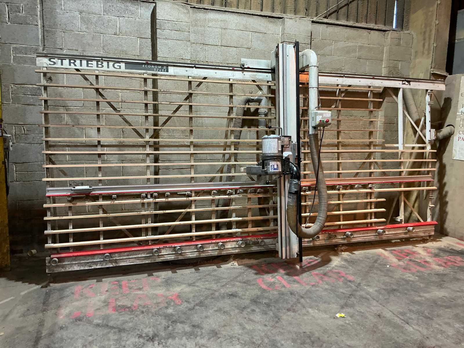 Used STRIEBIG STANDARD III vertical panel saw type 6220A maximum cutting range mm. 5300 x 2200 blade diameter 300 mm. (290 min.) motor power 4.4 KW 4750 rpm motor CE compliant