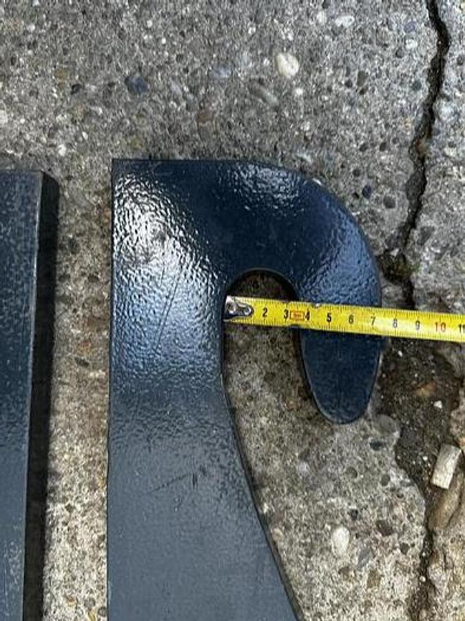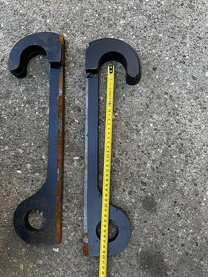 BIG weld-on hook suitable for Genie / Terex attachment, - Year of construction: 2025, - made of S355 steel, Dimensions:, Top bolt: Ã 32 mm, Bolt center: Ã 25 mm, Bottom bolt: Ã 35 mm, Bolt center-to-center distance: 330 mm, more recordings available!