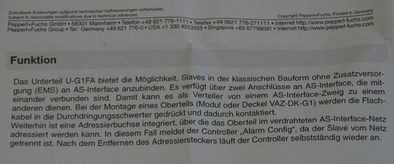 Type of machine: AS-Interface lower section
