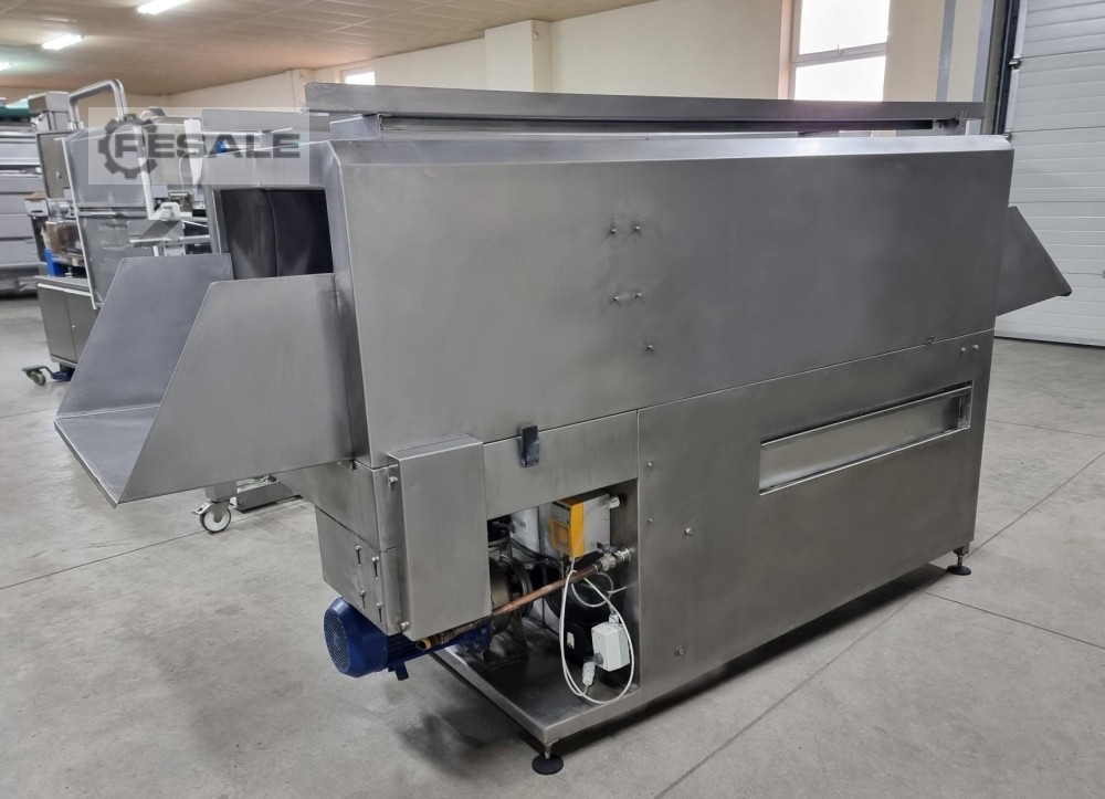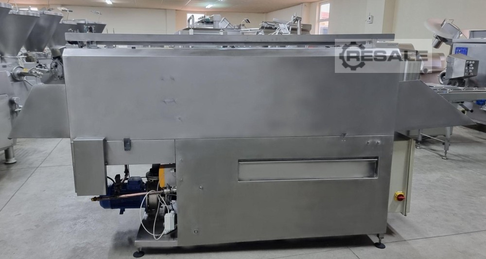 Multivac traysealer, model: T 800, plastic mesh belt, belt width: 250 mm, clearance: 350 mm x 170 mm, film width: 520 mm, infeed belt, belt with dividers, belt width: 205 mm, dividers height: 35 mm, distance between dividers: 290 mm, total dimensions: 6450 mm x 1050 mm x 2060 mm.