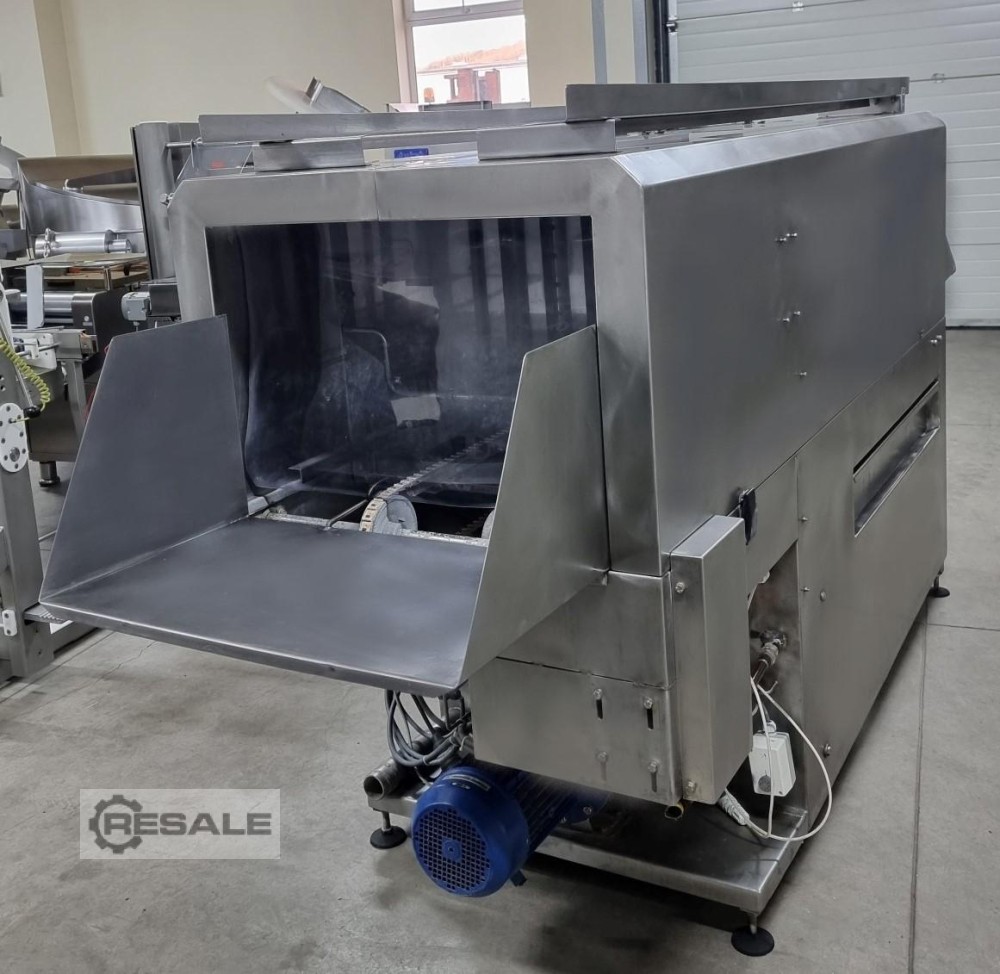 Ref. №: 4230 Washing machine for plastic boxes Plastic boxes with dimensions 600х400х100-320 mm Voltage: 400V, 50 Hz, 3 Ph/ zero / ground Total power: 24,0 kW Power circulating pump: 5,5 kW Machine dimensions Length: 345 сm (with flatnesses input/output) Width: 95 cm Height: 162 сm