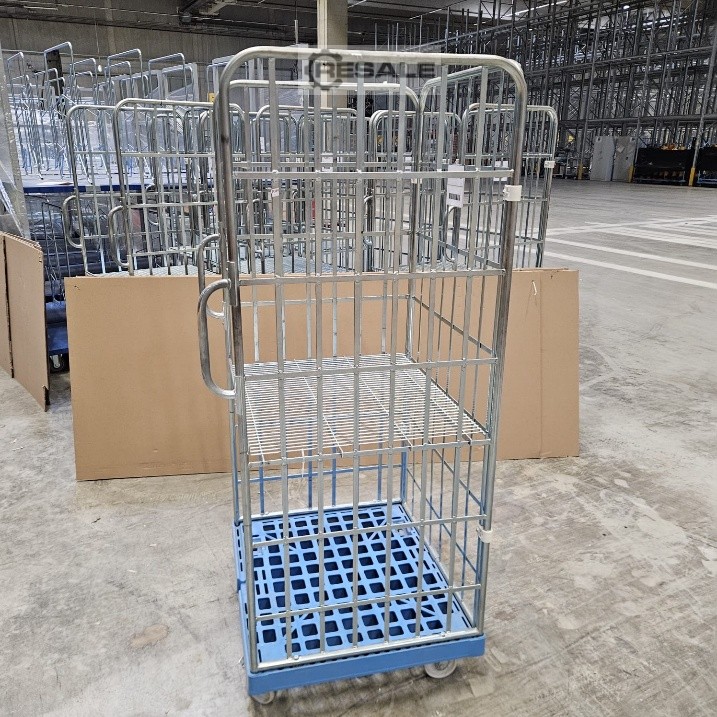 58 pieces of roll containers, transport trolleys with plastic plate – used - : Price per piece from location: only 85.-€ (net) Price for complete acceptance, per piece ex location: only 75.-€ (net)! Manufacturer: unknown Type: unknown Year of manufacture: unknown Payload: unknown, should be at least 500kg Dimensions: Width: approx. 75cm Depth: approx. 70cm, with handles approx. 77cm Height: approx. 1.80m Most trolleys have a height-adjustable intermediate floor (wire mesh) 2 push handles Three sides closed Condition: good Available: immediately Location: Heilbronn