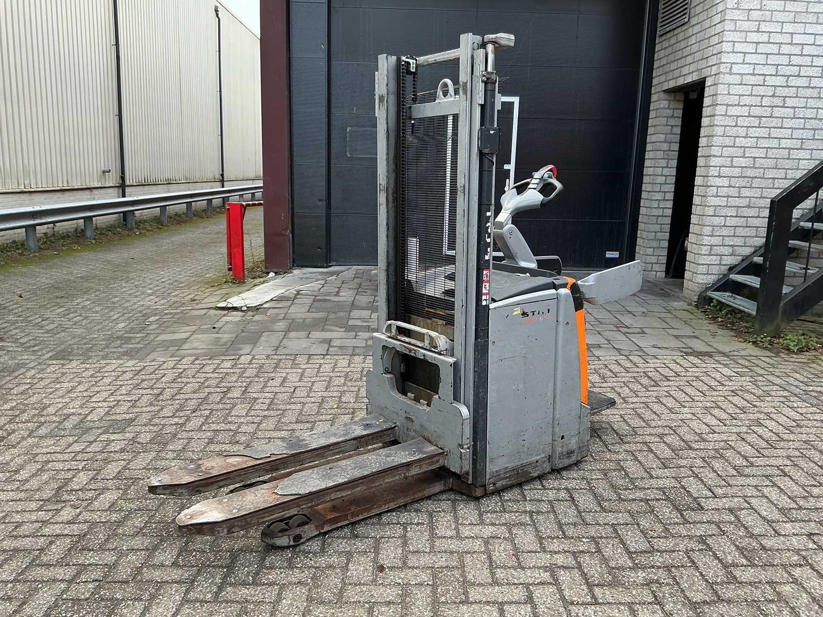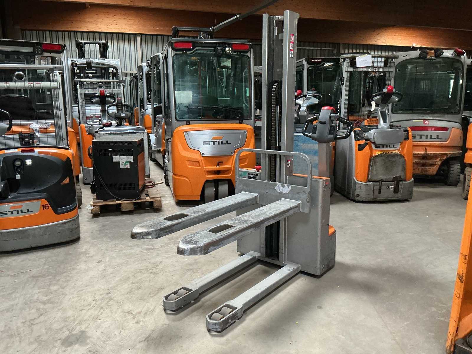 Electric walking forklift, ride-on pedestrian stacker STILL type EGV 14Fabr. No. 330221900092 year of construction 2009Nominal load capacity 1400 kgLifting height 5475 mmFork length 1160 mmTotal length 1930 mmTotal width 860 mmOverall height 2330 mmOperating voltage 24 volt- Triplex mast with 1830 mm Free lift- 689.3 operating hours read- Battery from year of construction 08/2008, type 3 PZS 315 (24Volt / 315Ah)- Automatic charger- New TÜV test UVV (surcharge 150,-- EUR net)Weight 1440 kgGood condition, battery bad. Surcharge