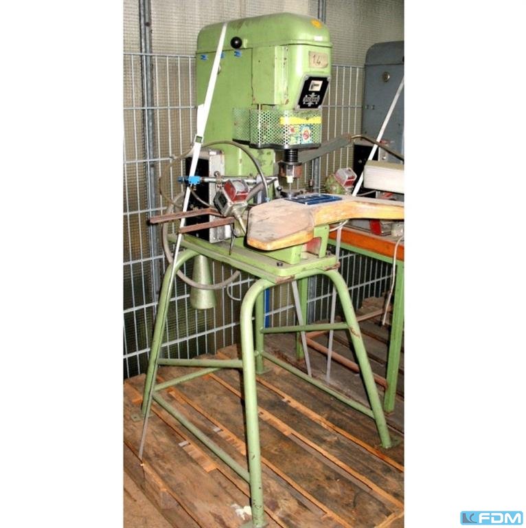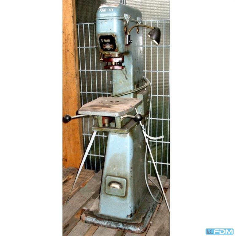 pressure at min. stroke:3 t throat:150 mm stroke:- 40 mm distance table/ram, max. stroke up, adjustment up:200 mm table surface area:280 x 250 mm pressure at max. stroke:1,5 t no. of strokes with min. stroke:- 80 /min no. of strokes with max. stroke:- 50 /min hole in the table:45 mm table height over floor:810 mm ram surface:115 x 100 mm Required air-pressure:4 bar weight:0,15 t Dimensions (WxDxH):0,7 x 0,8 x 1,4 m
